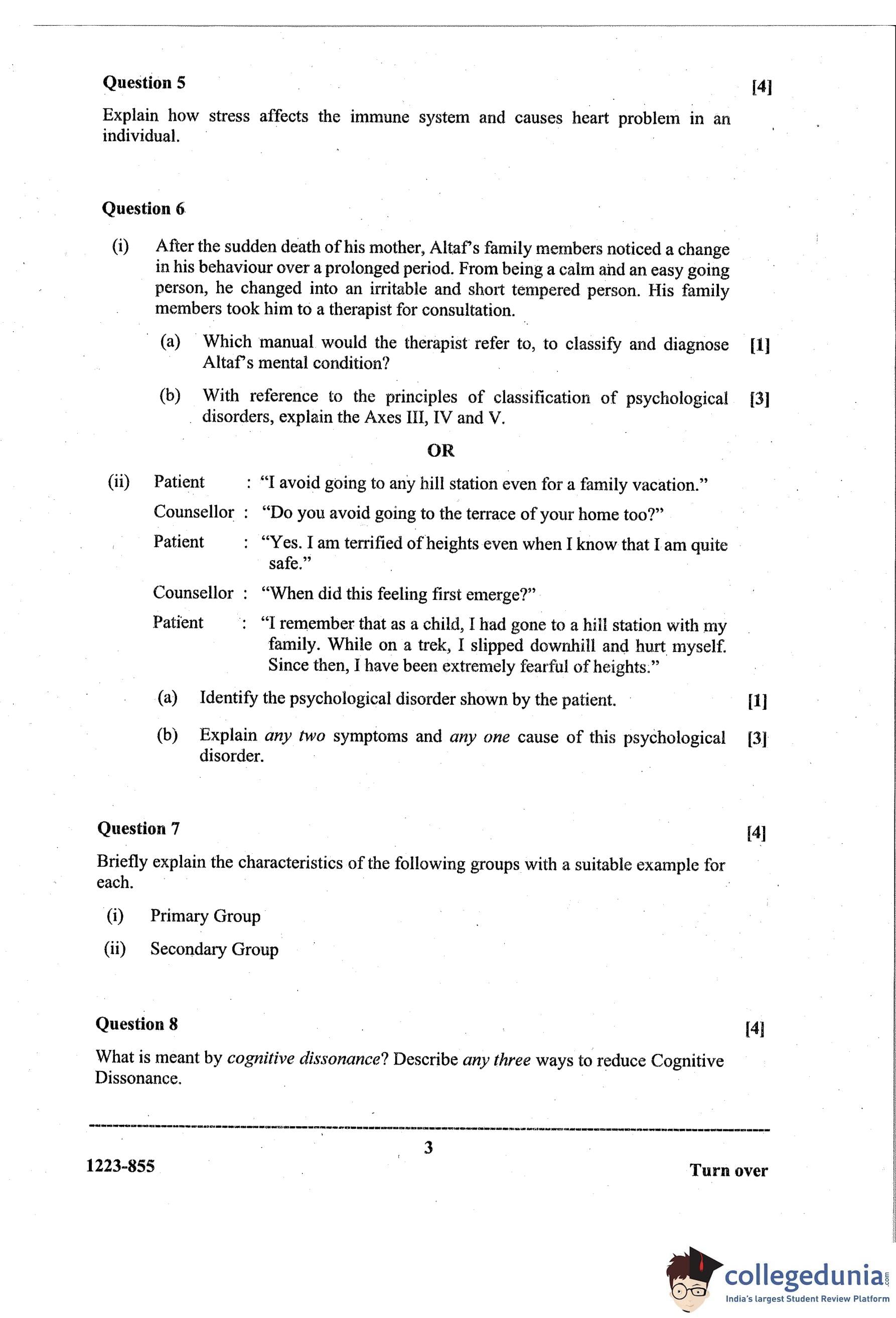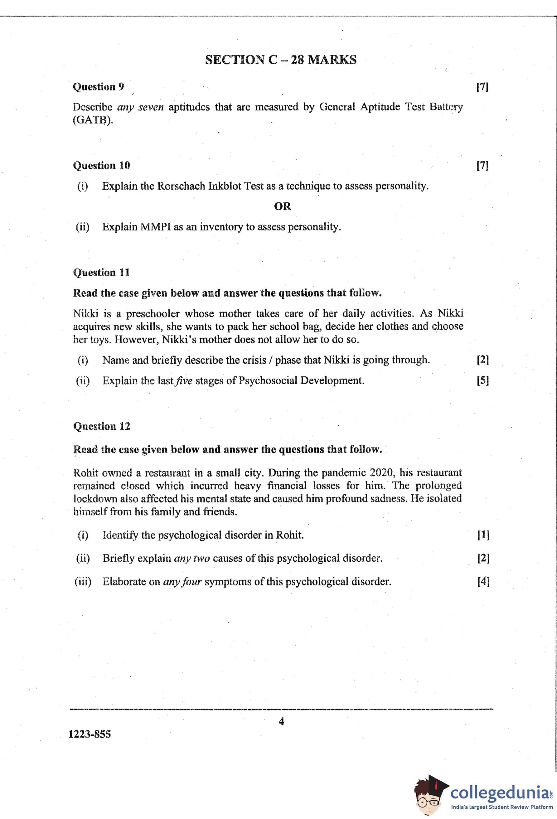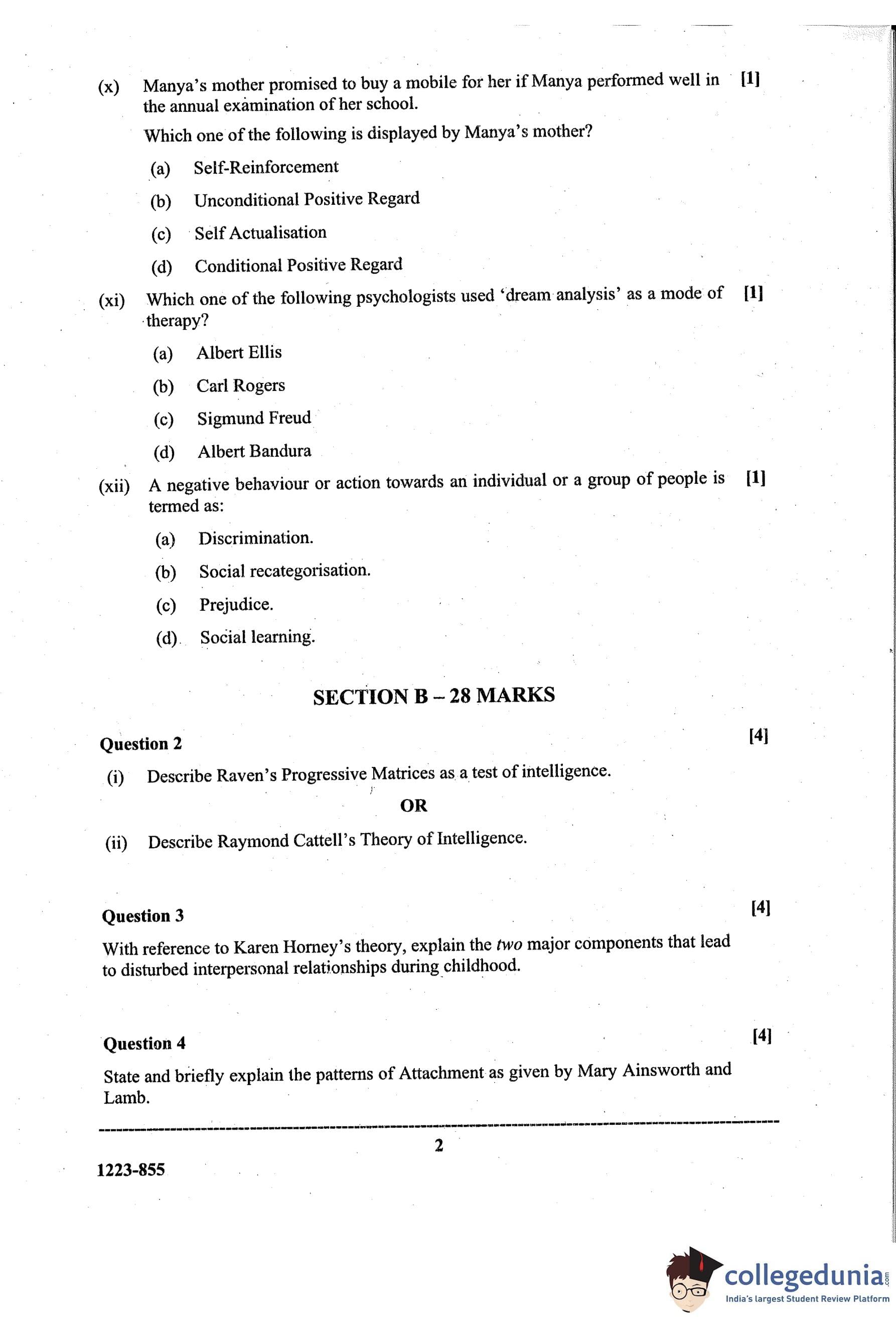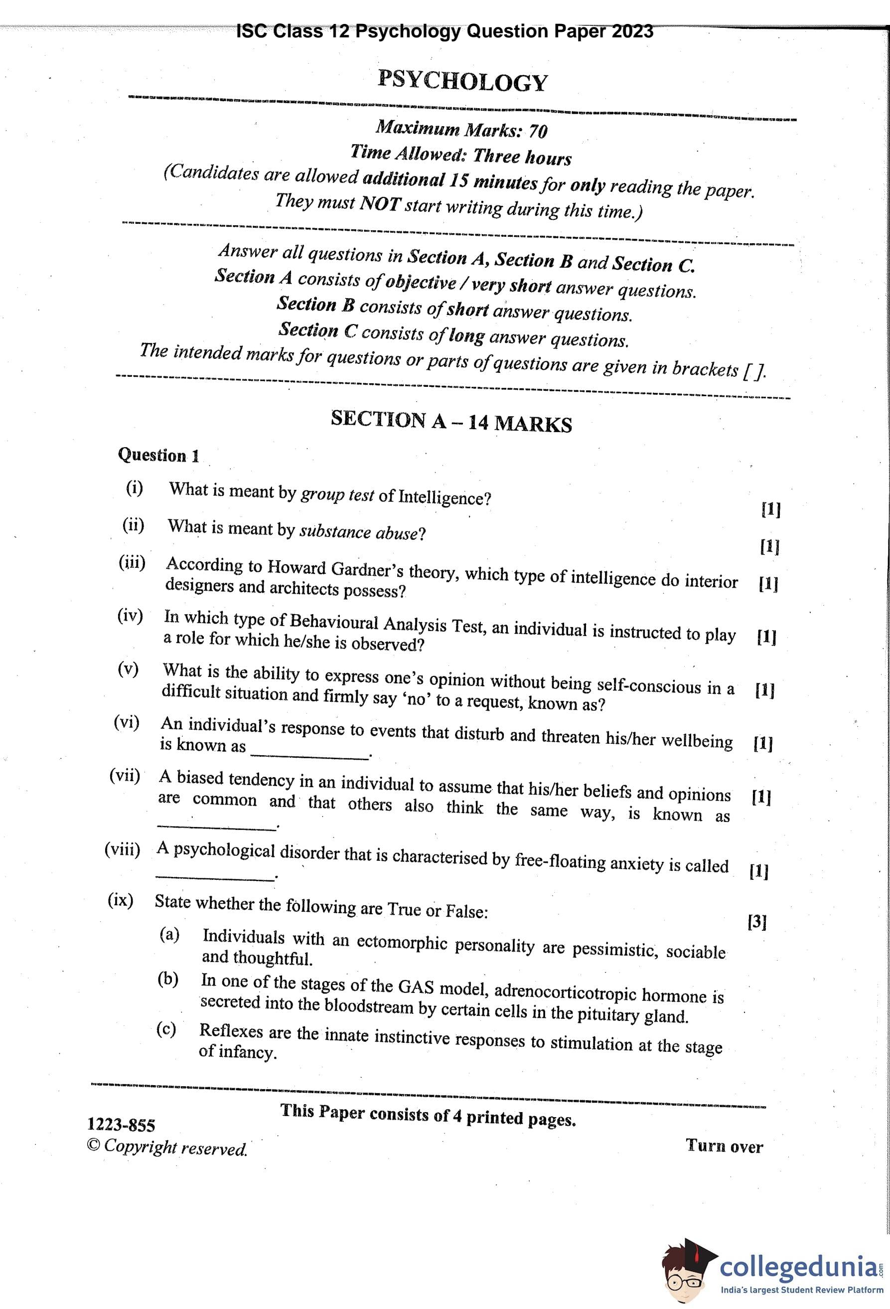 ISC Class 12 Psychology Question Paper 2023 with Answer Key