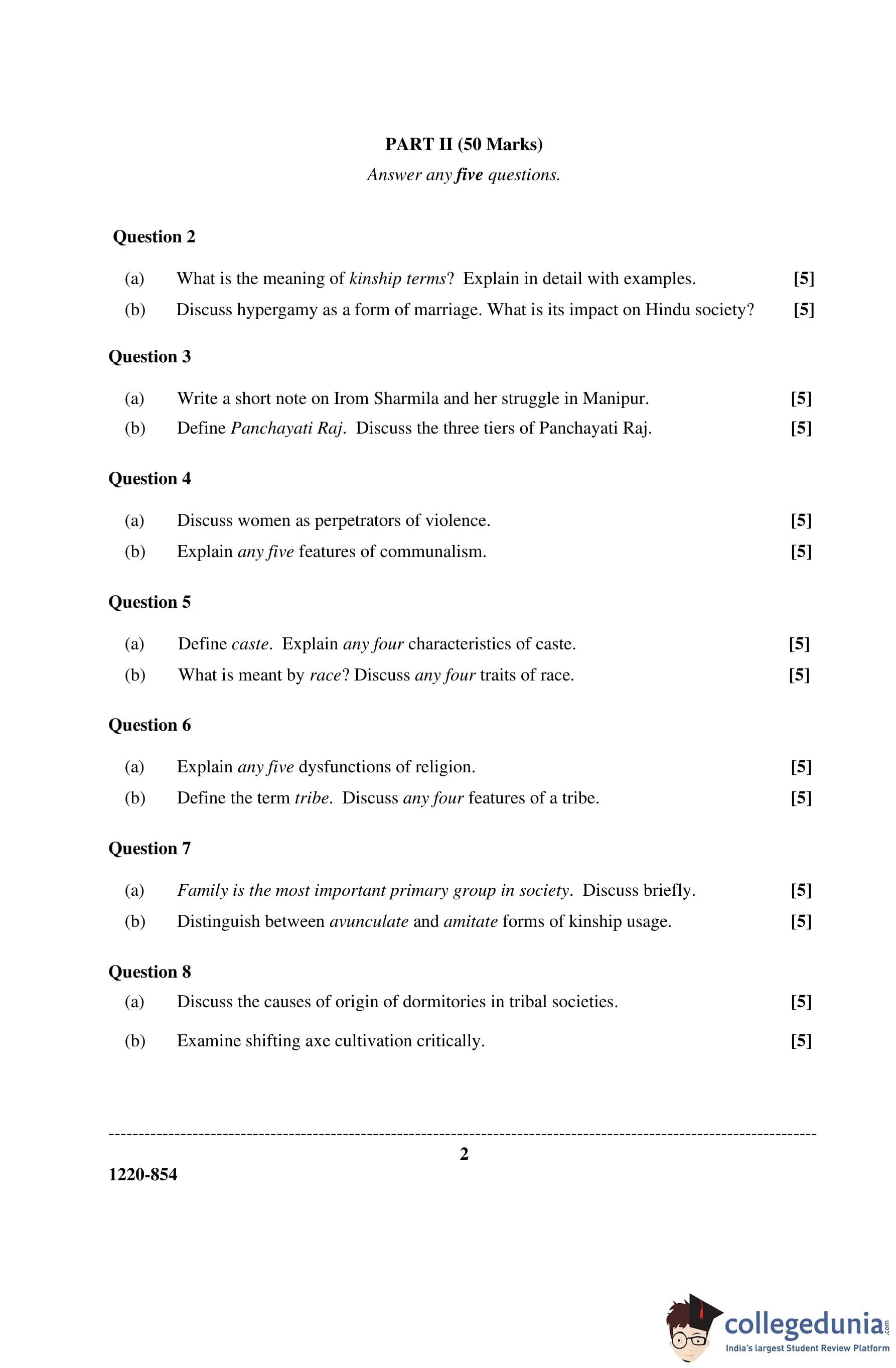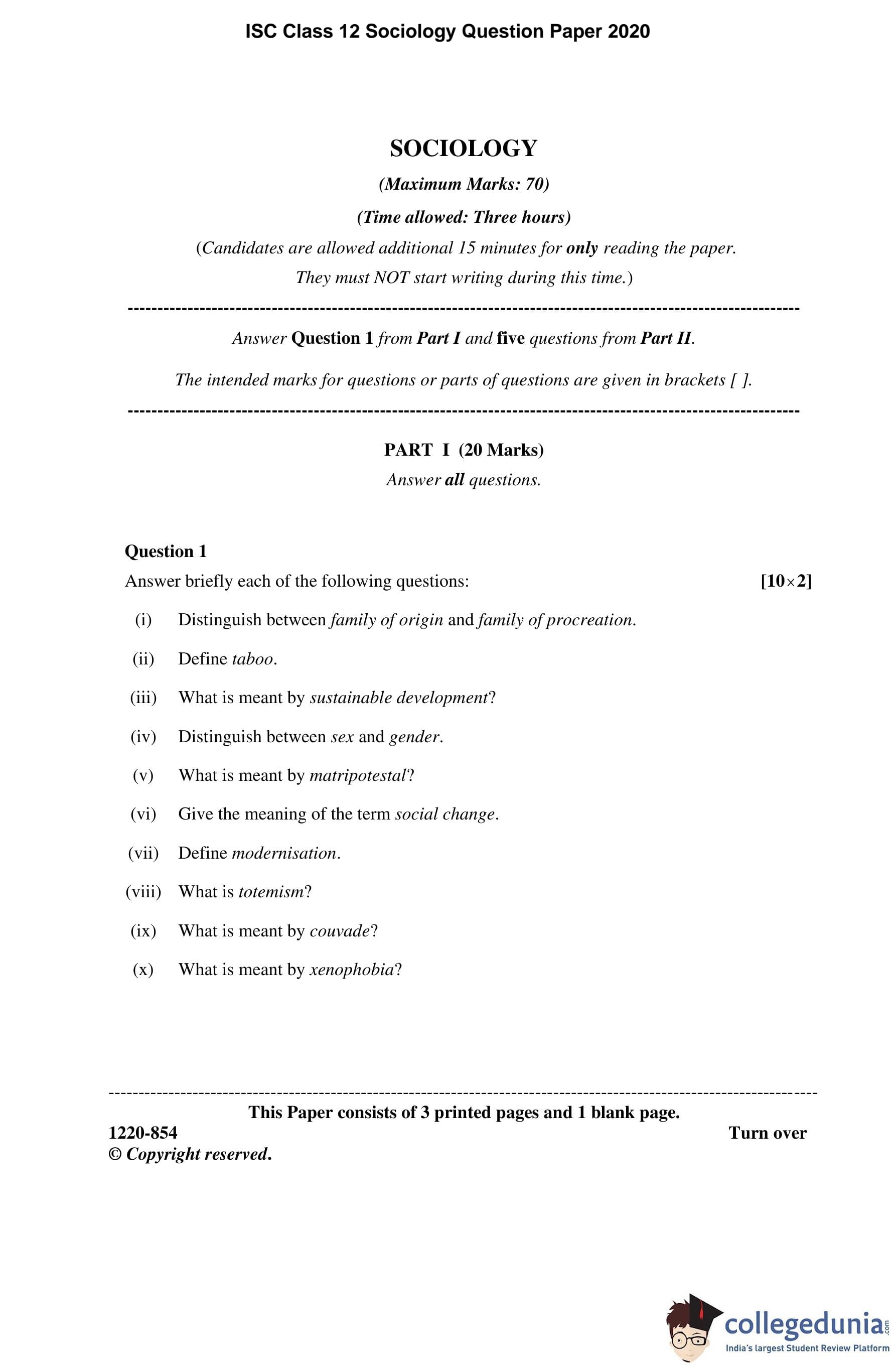 ISC Class 12 Sociology Question Paper 2020 with Answer Key