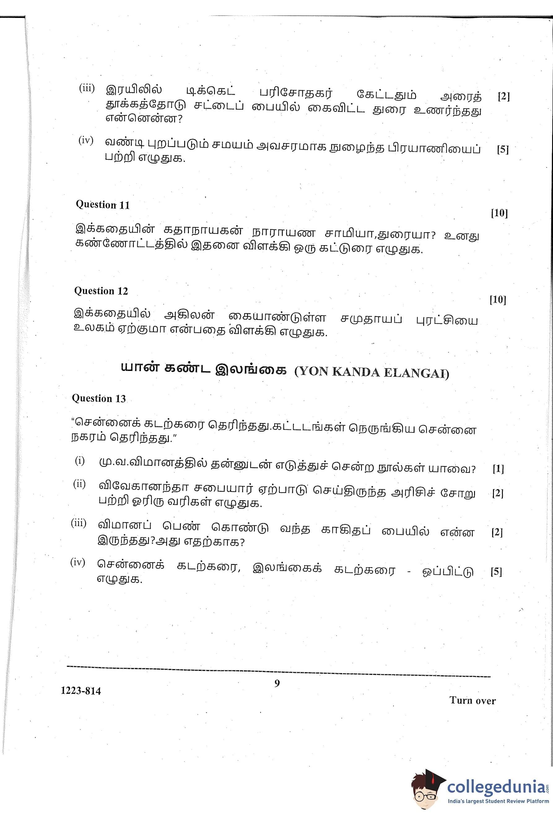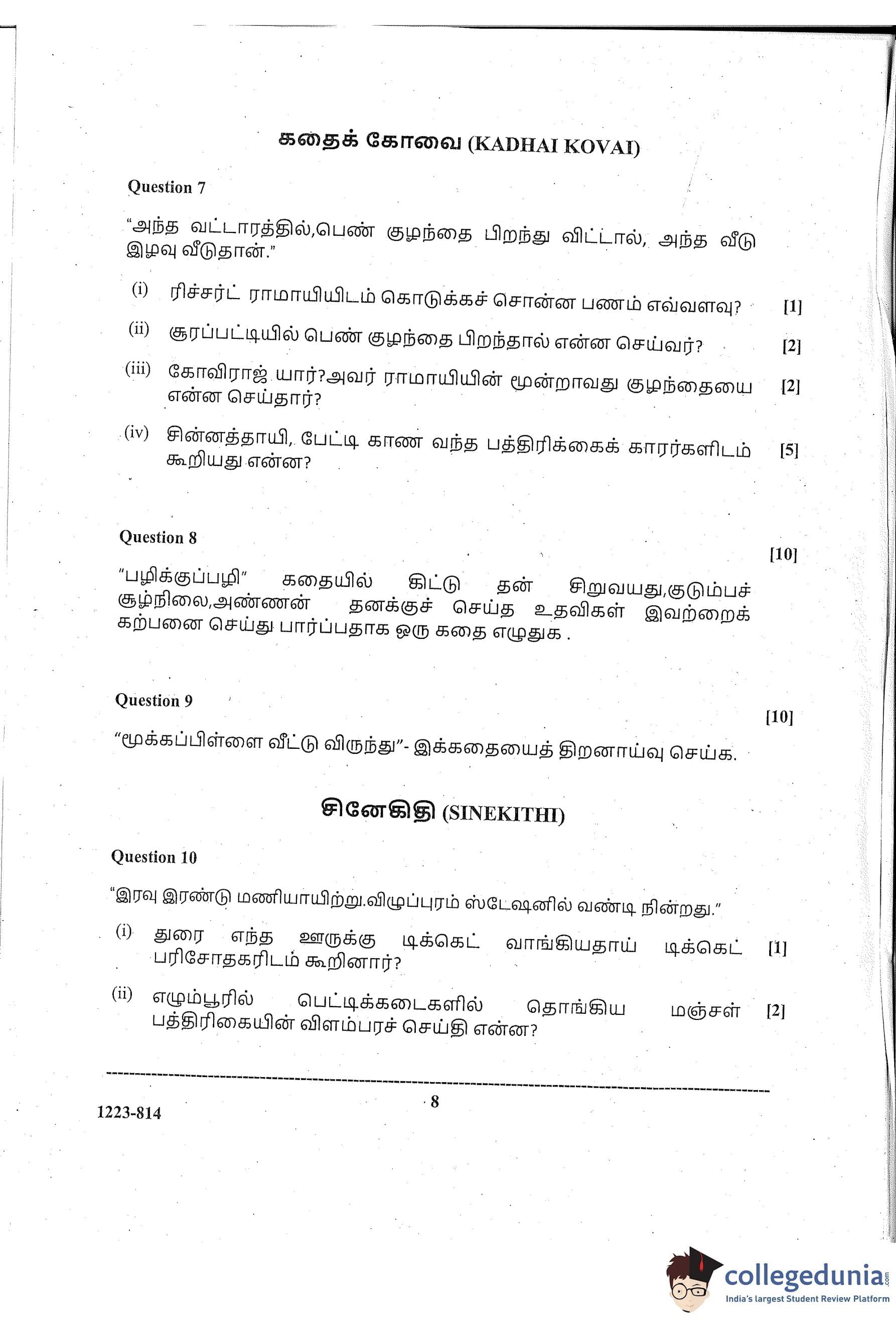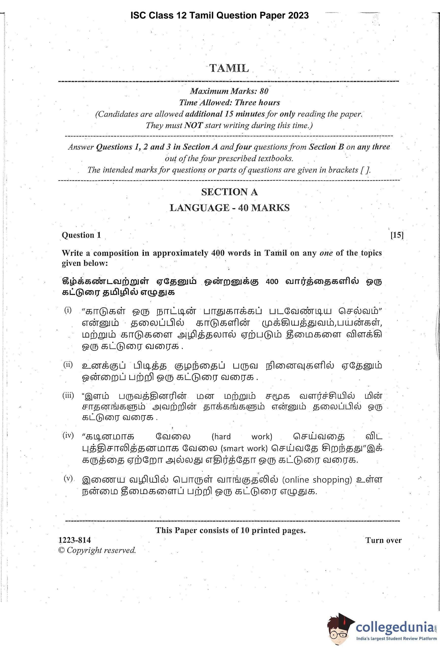 ISC Class 12 Tamil Question Paper 2023 with Answer Key