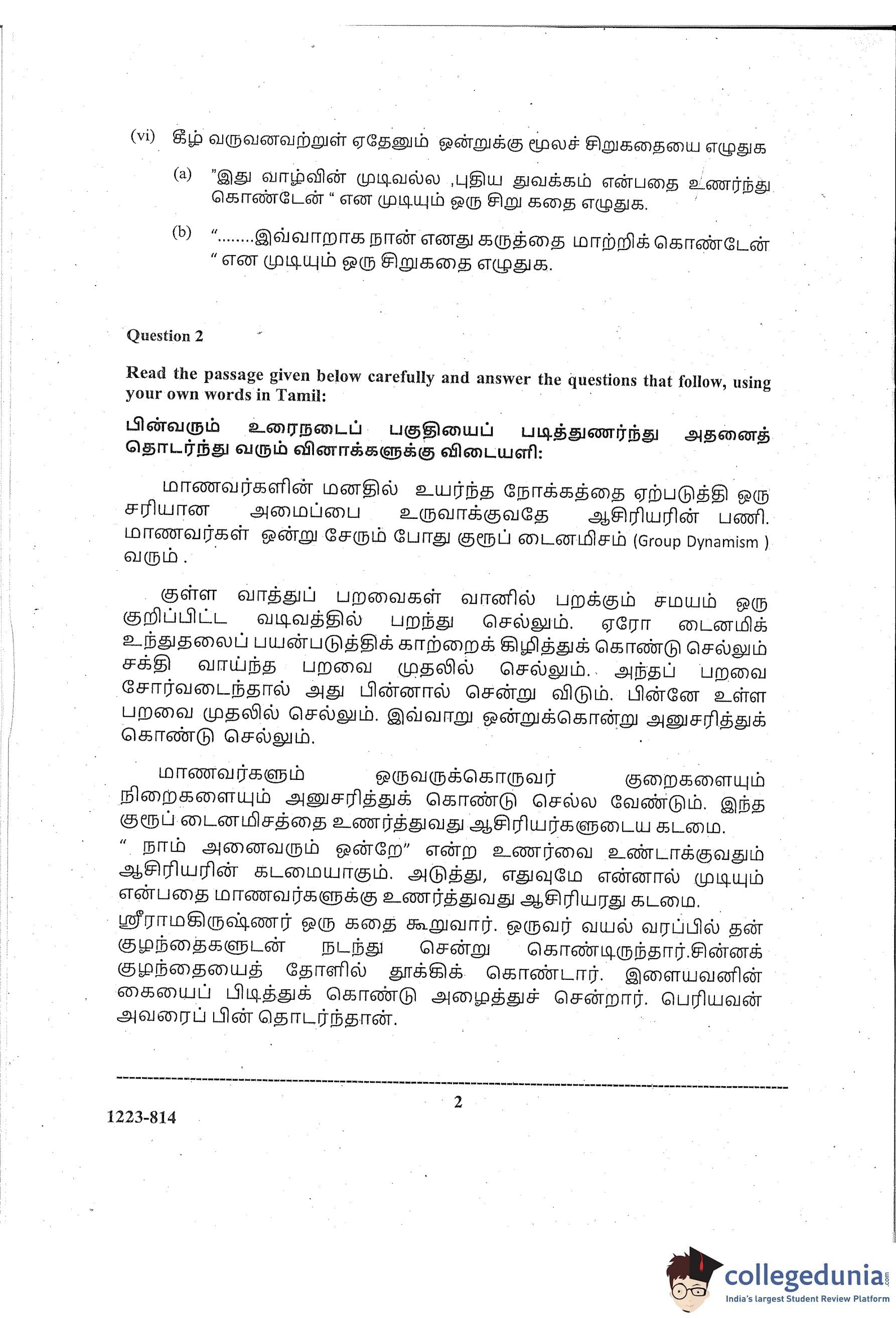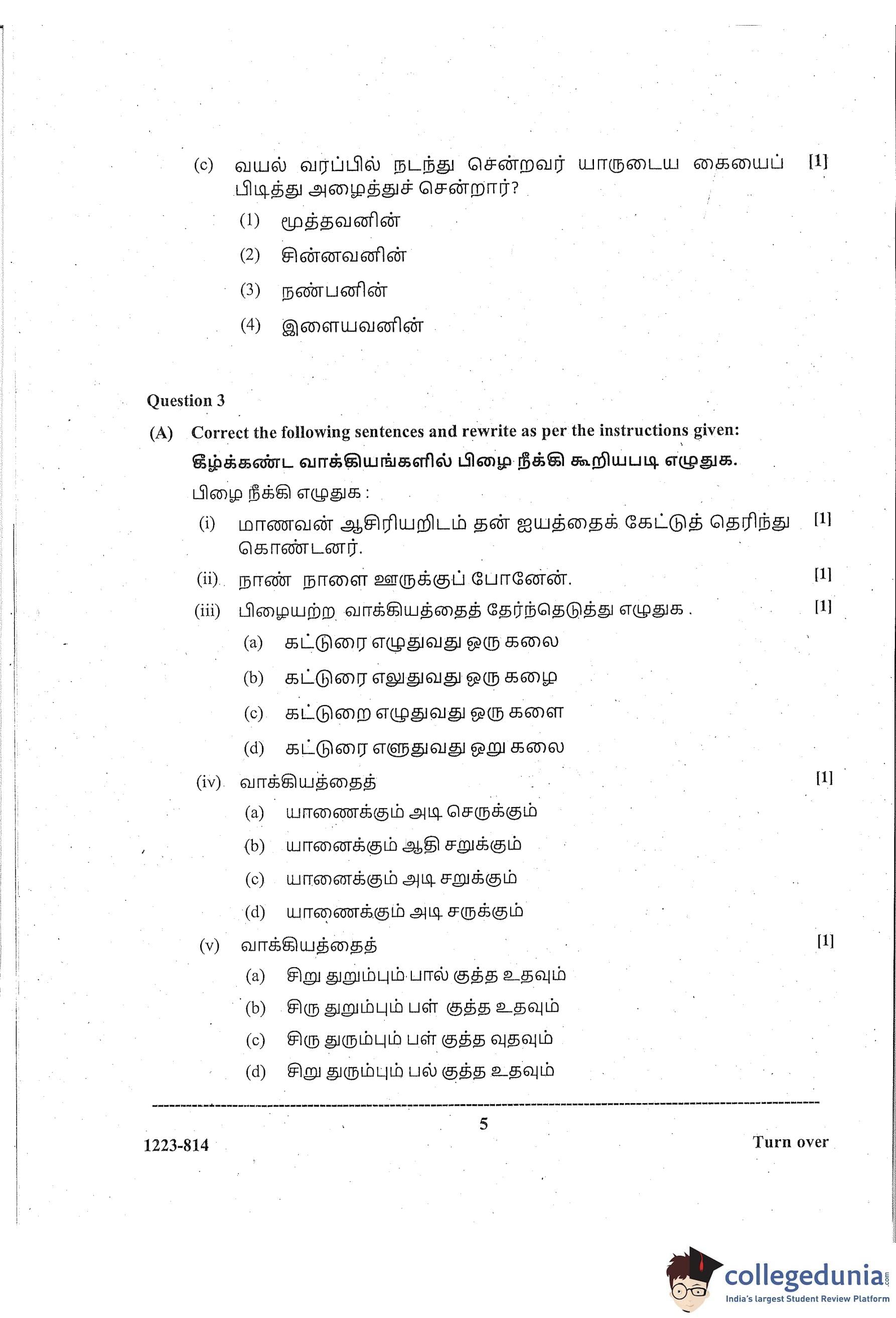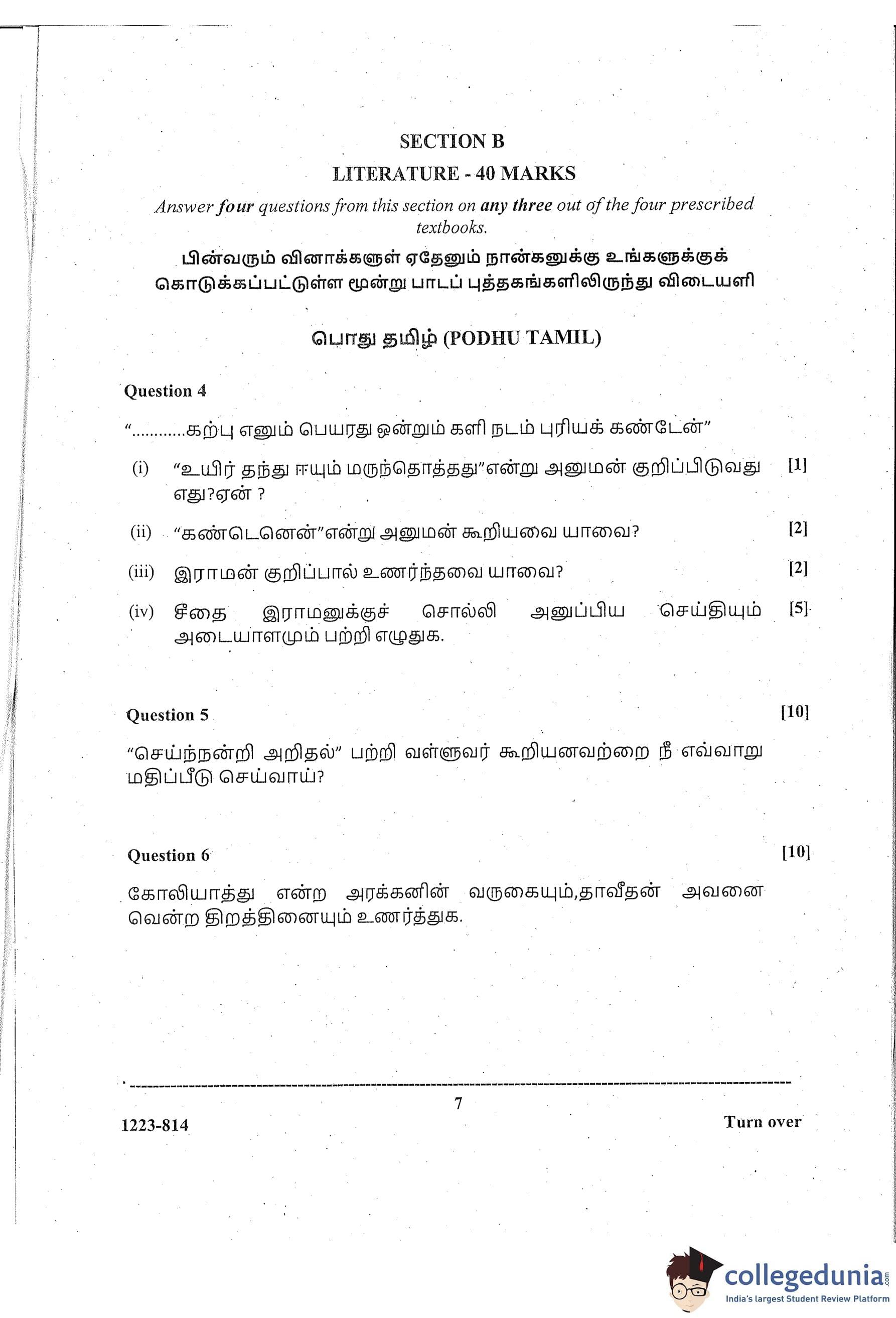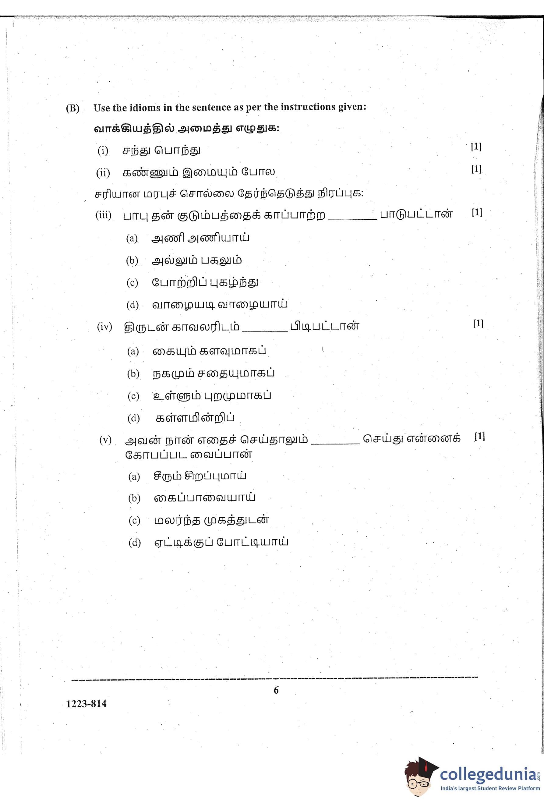 ISC Class 12 Tamil Question Paper 2023 with Answer Key
