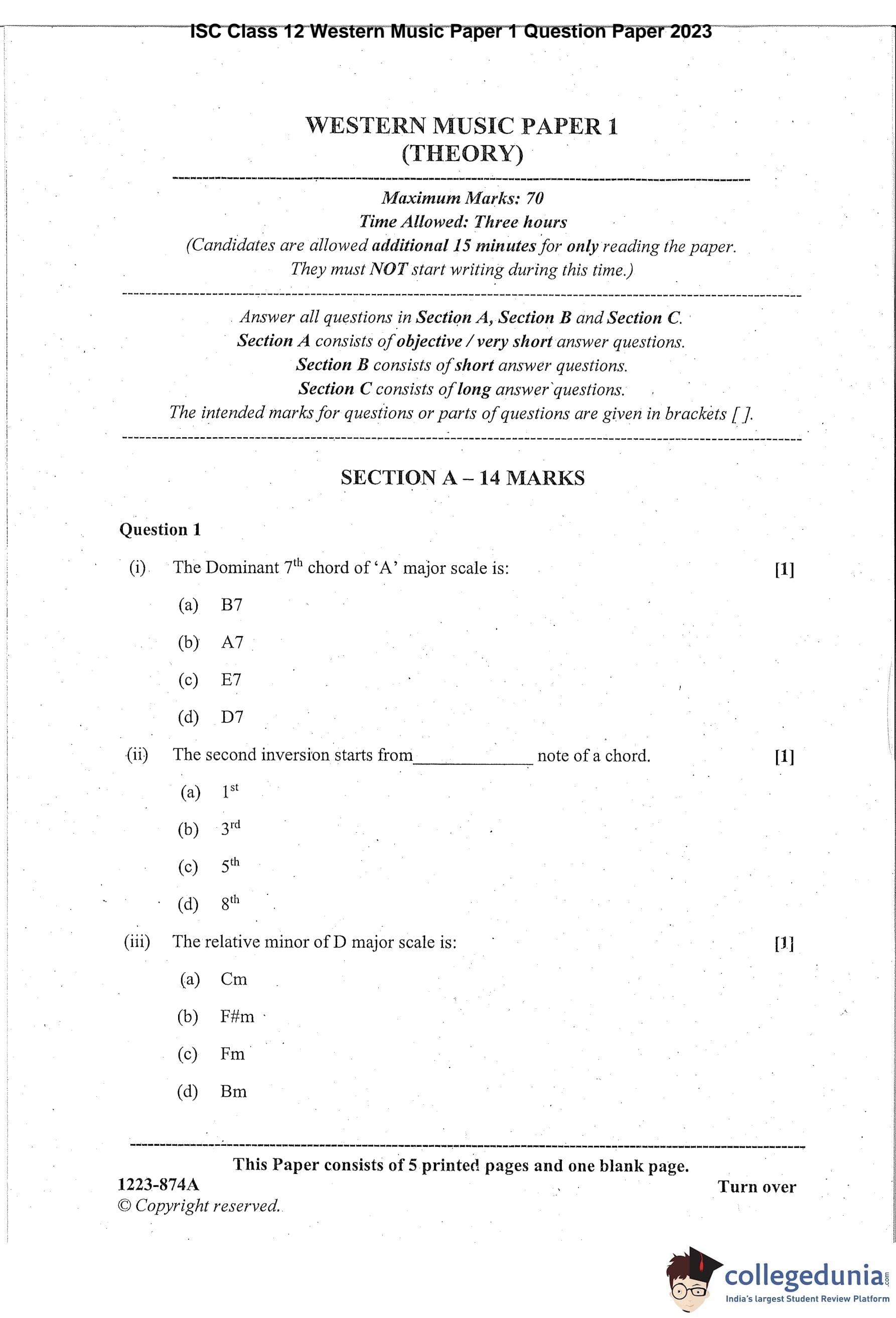 | ISC Class 12 Western Music Question Paper 2023 PDF | ISC Class 12 Western Music Answer Key 2023 PDF |