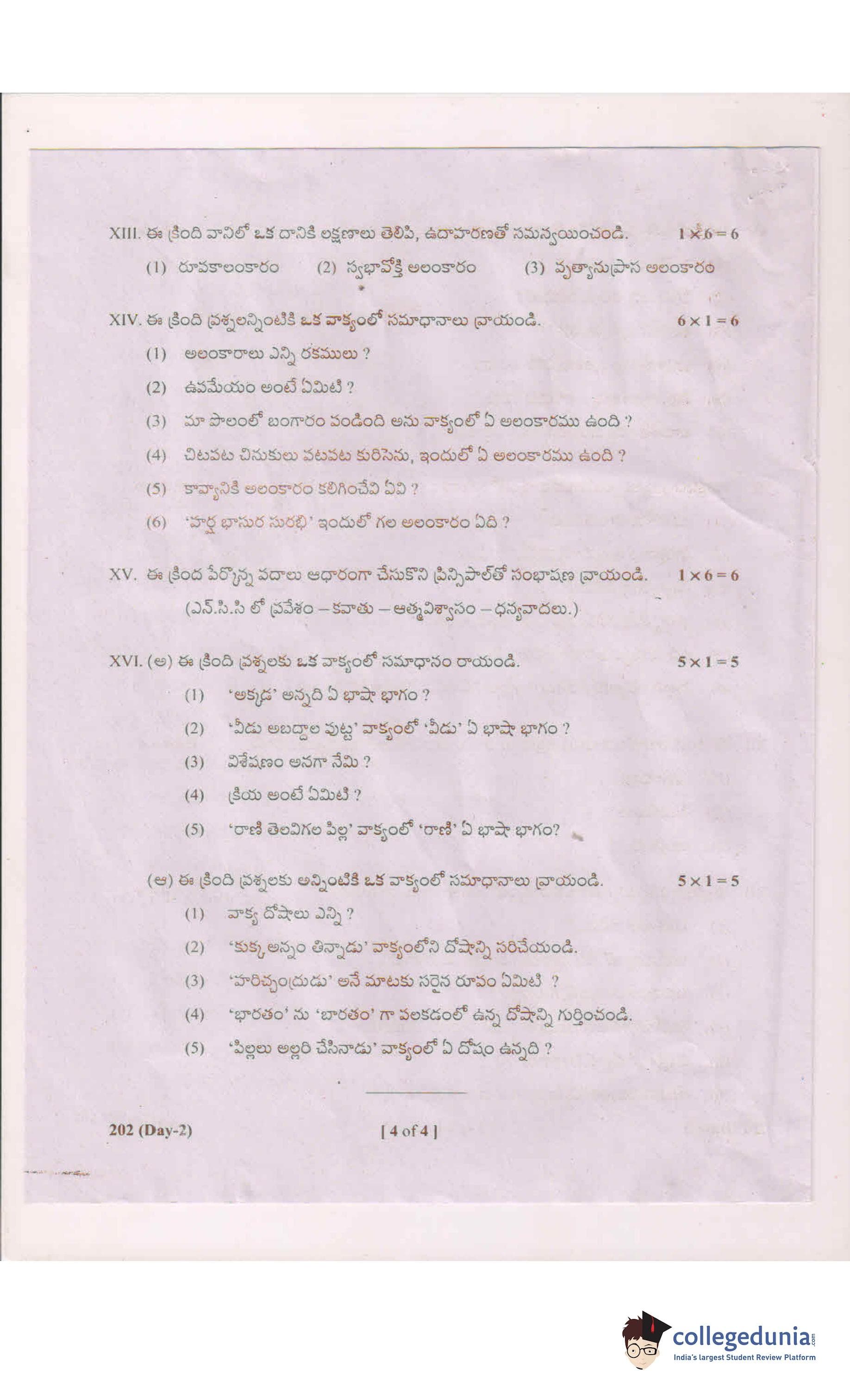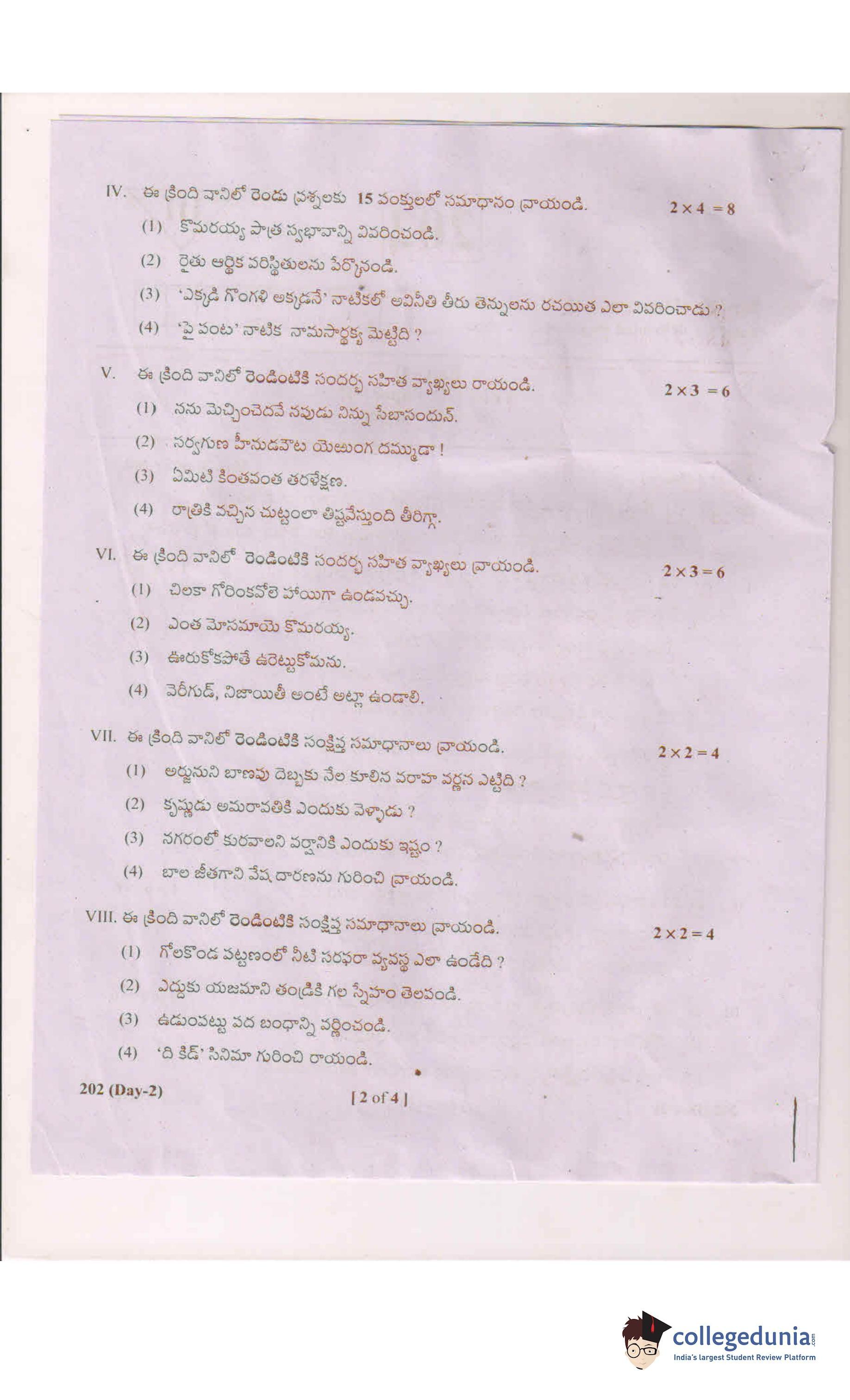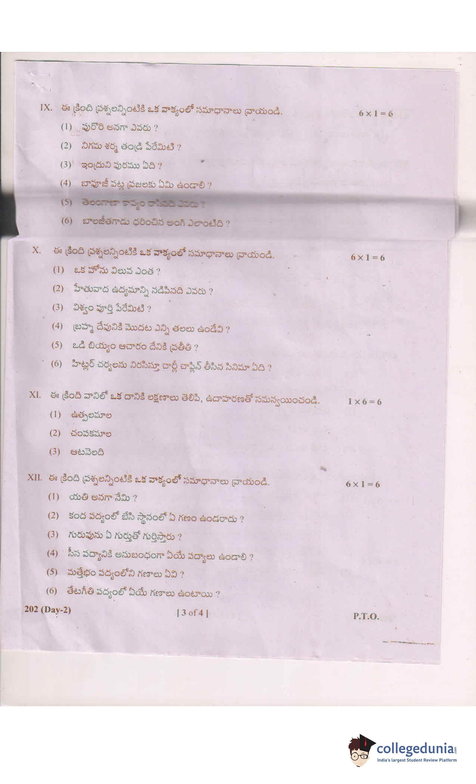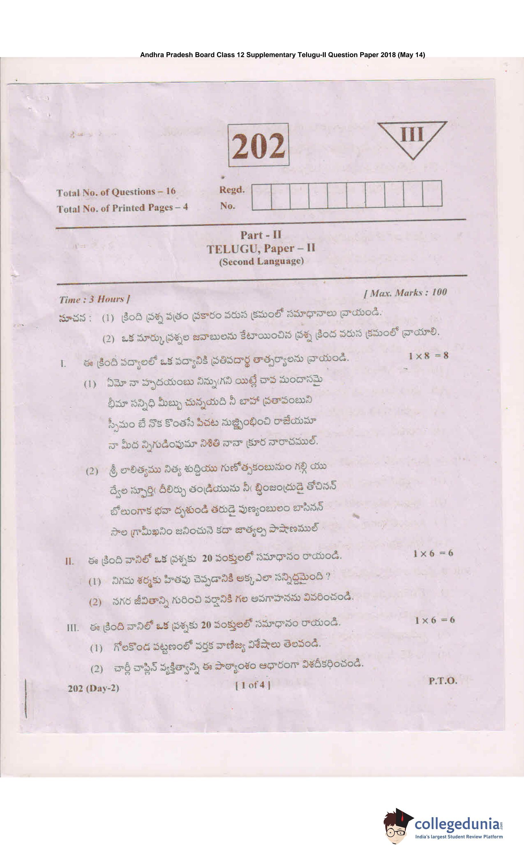 AP Intermediate 2nd year Telugu 202 Supplementary Question Paper 2018 (May 14)