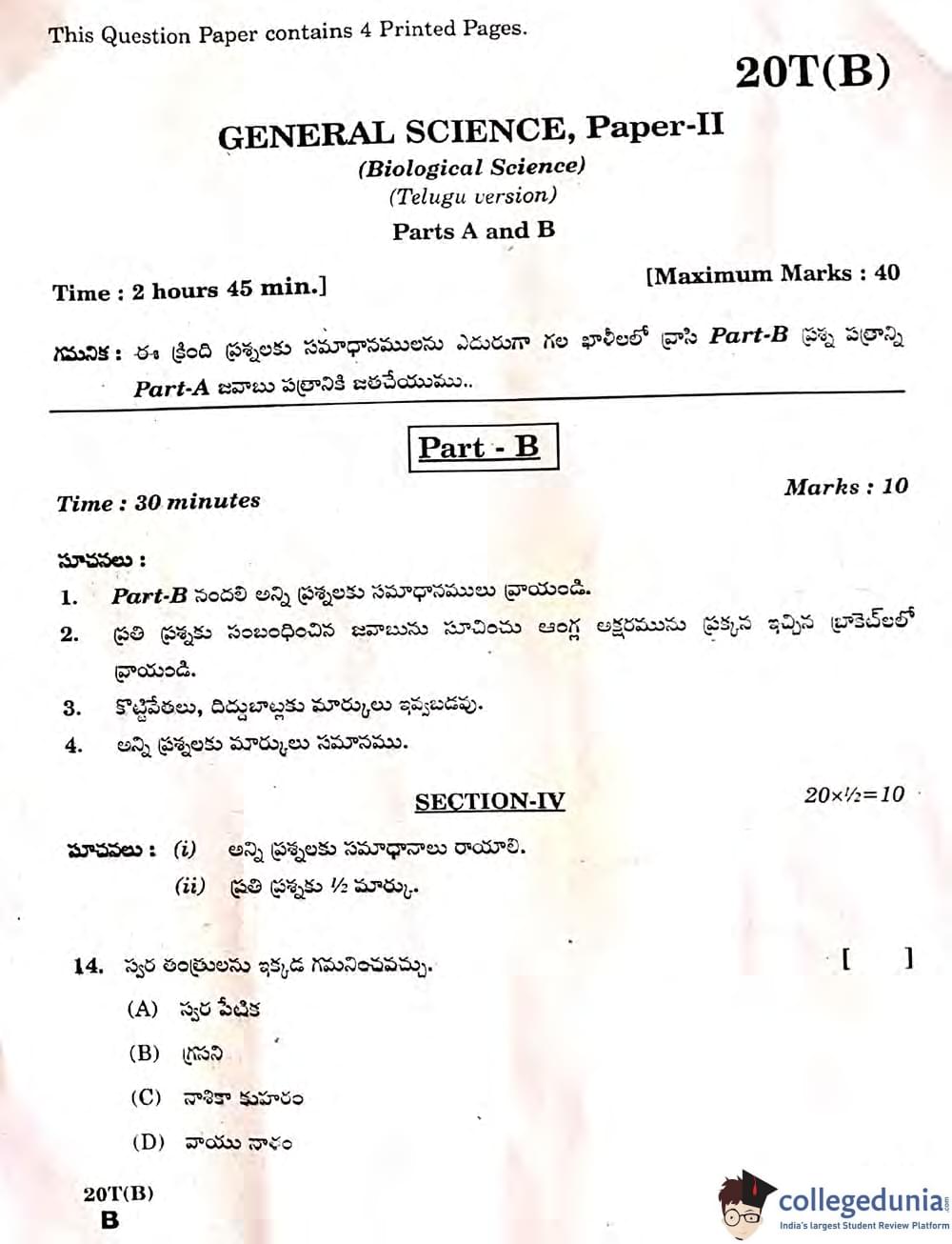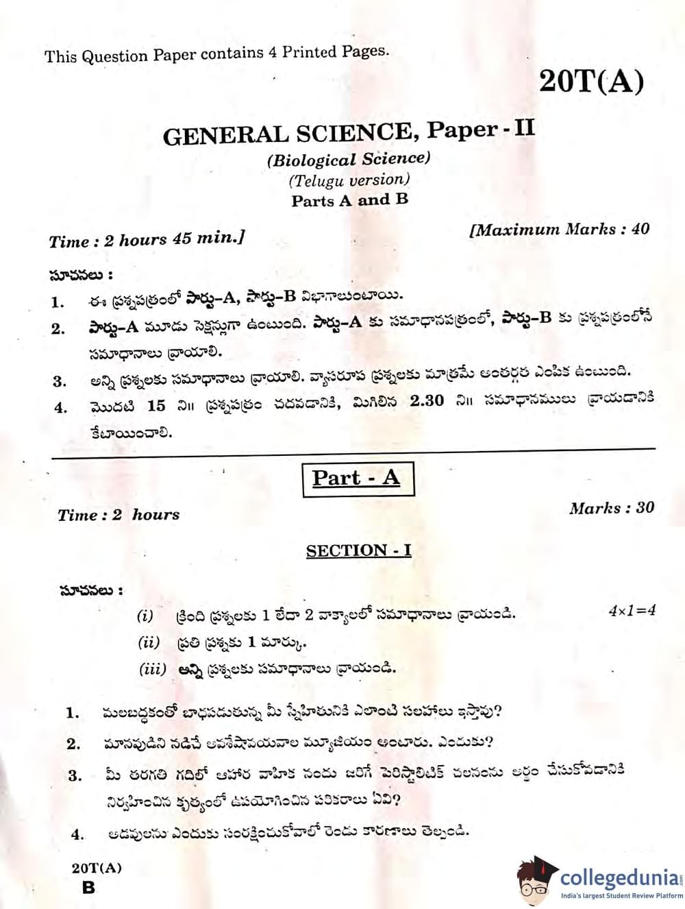 AP SSC 2019 General Science II (Telugu) Question Paper with Answer Key PDF is available for download. The exam was successfully conducted on March 27, 2019 by the Board of Secondary Education of Andhra Pradesh. According to initial student reaction, AP SSC General Science paper was rated as Easy to Moderate in difficulty level. The question paper comprised a total of 33 questions divided into two parts.