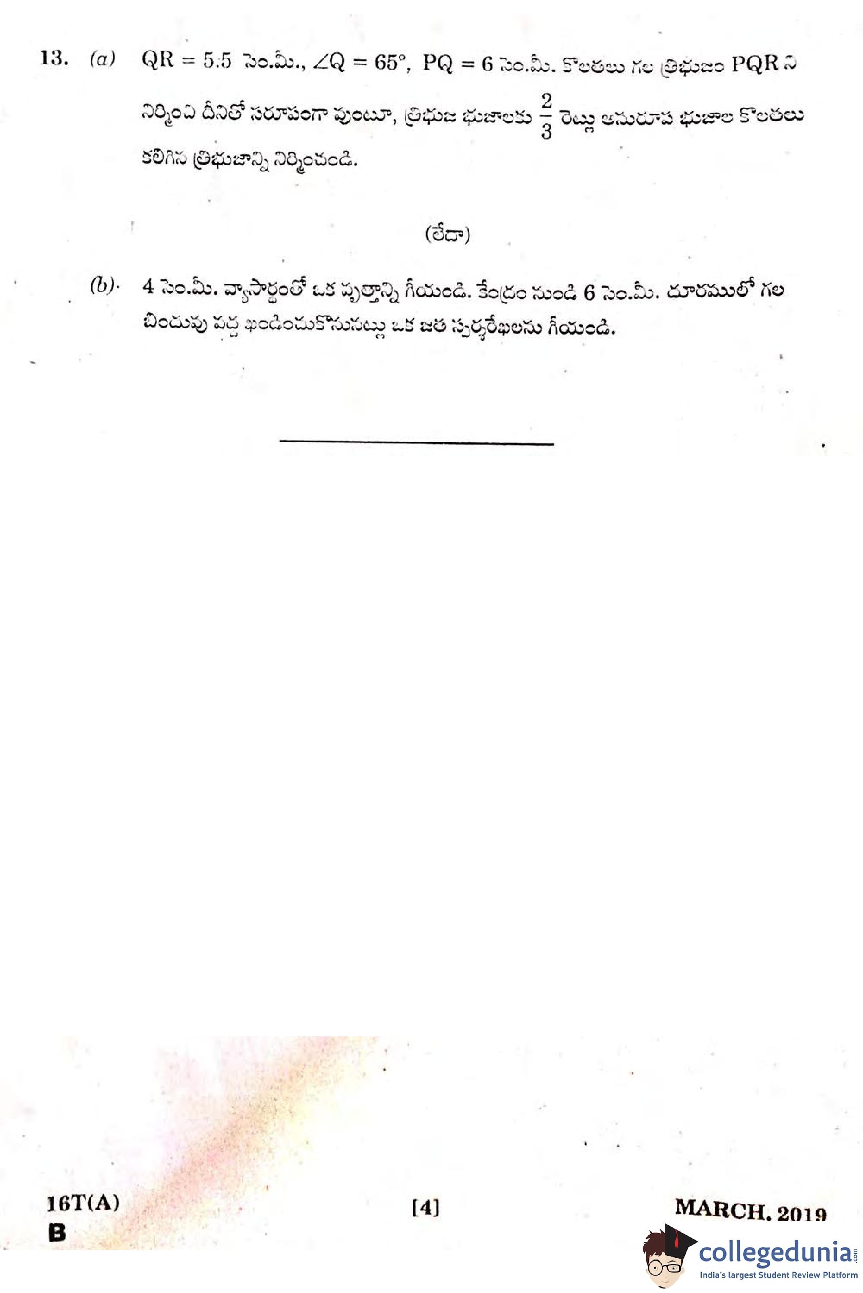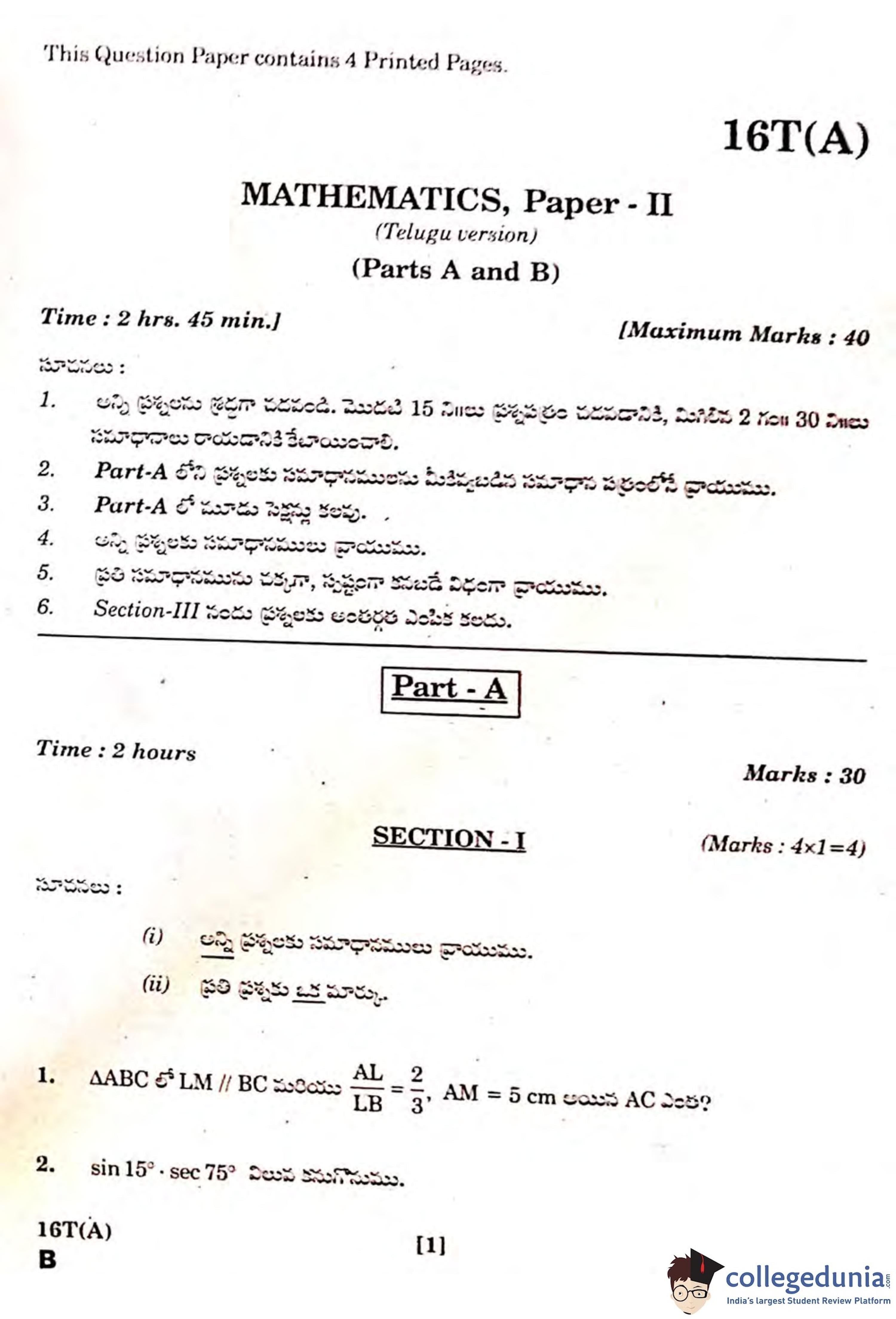 AP SSC Mathematics II (Telugu) Question Paper 2019 with Answer Key