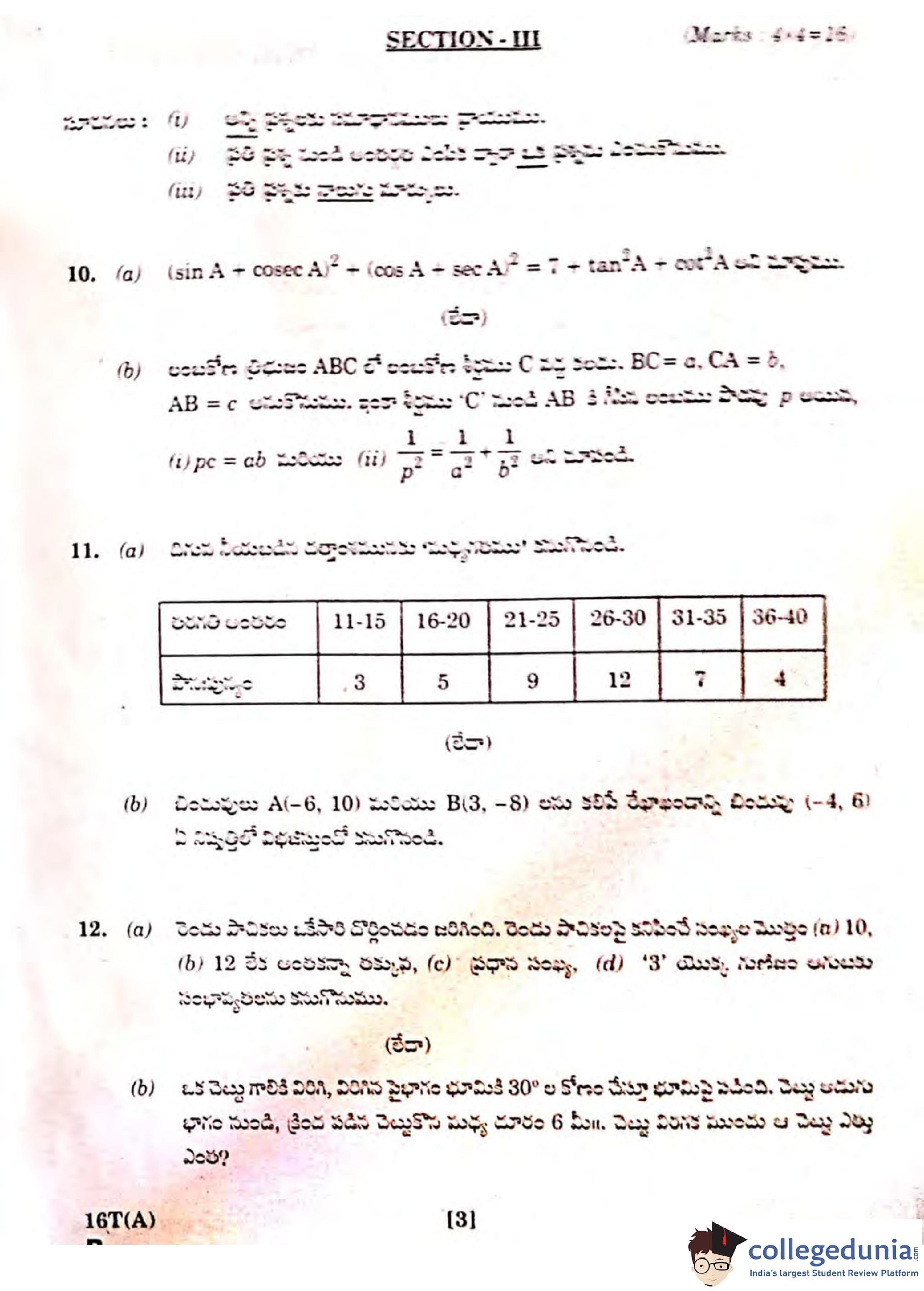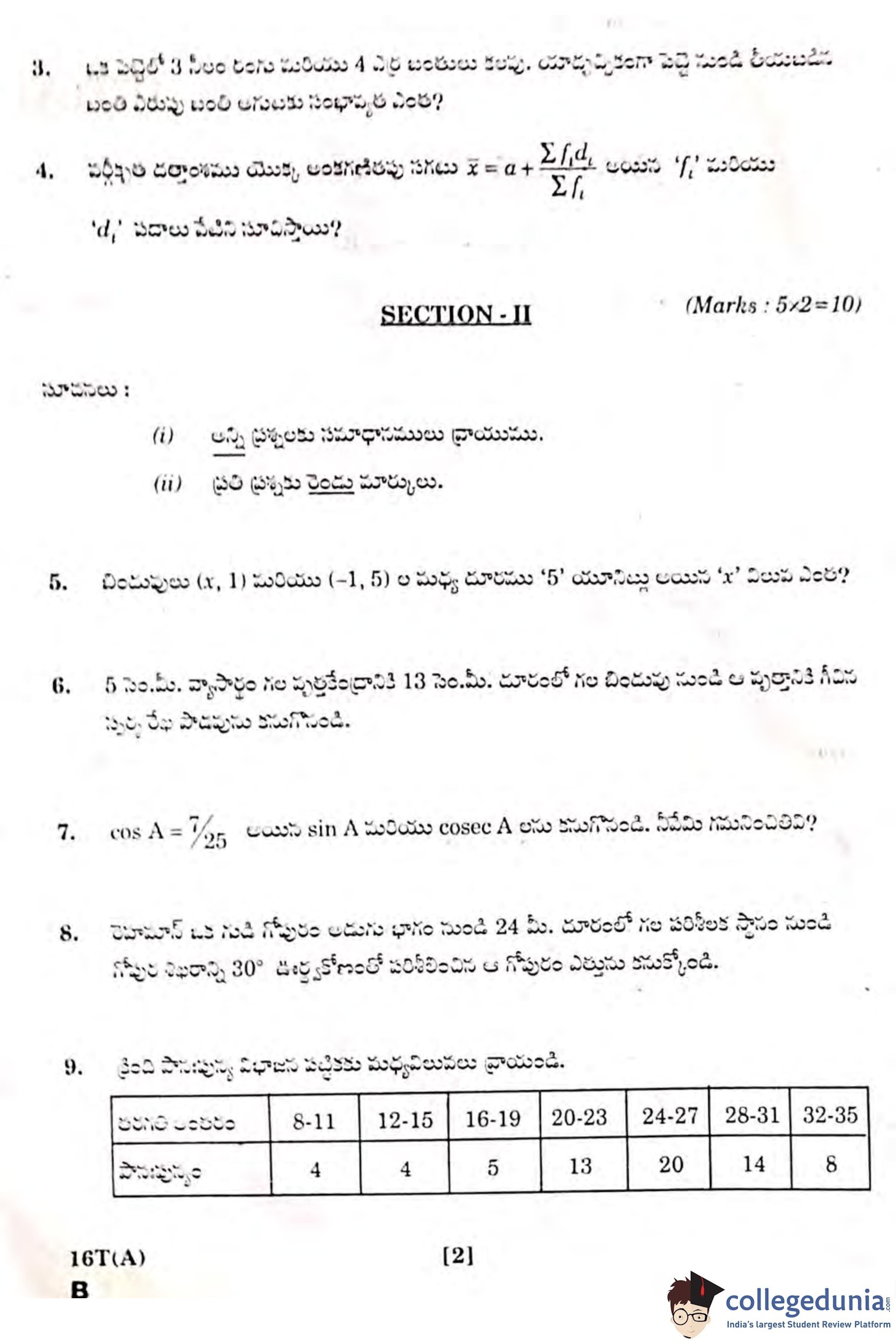 AP SSC 2019 Mathematics II (Telugu) Question Paper with Answer Key PDF is available for download. The exam was successfully conducted on March 25, 2019 by the Board of Secondary Education of Andhra Pradesh. According to initial student reaction, AP SSC Mathematics paper was rated as Easy to Moderate in difficulty level. The question paper comprised a total of 33 questions divided into two parts.