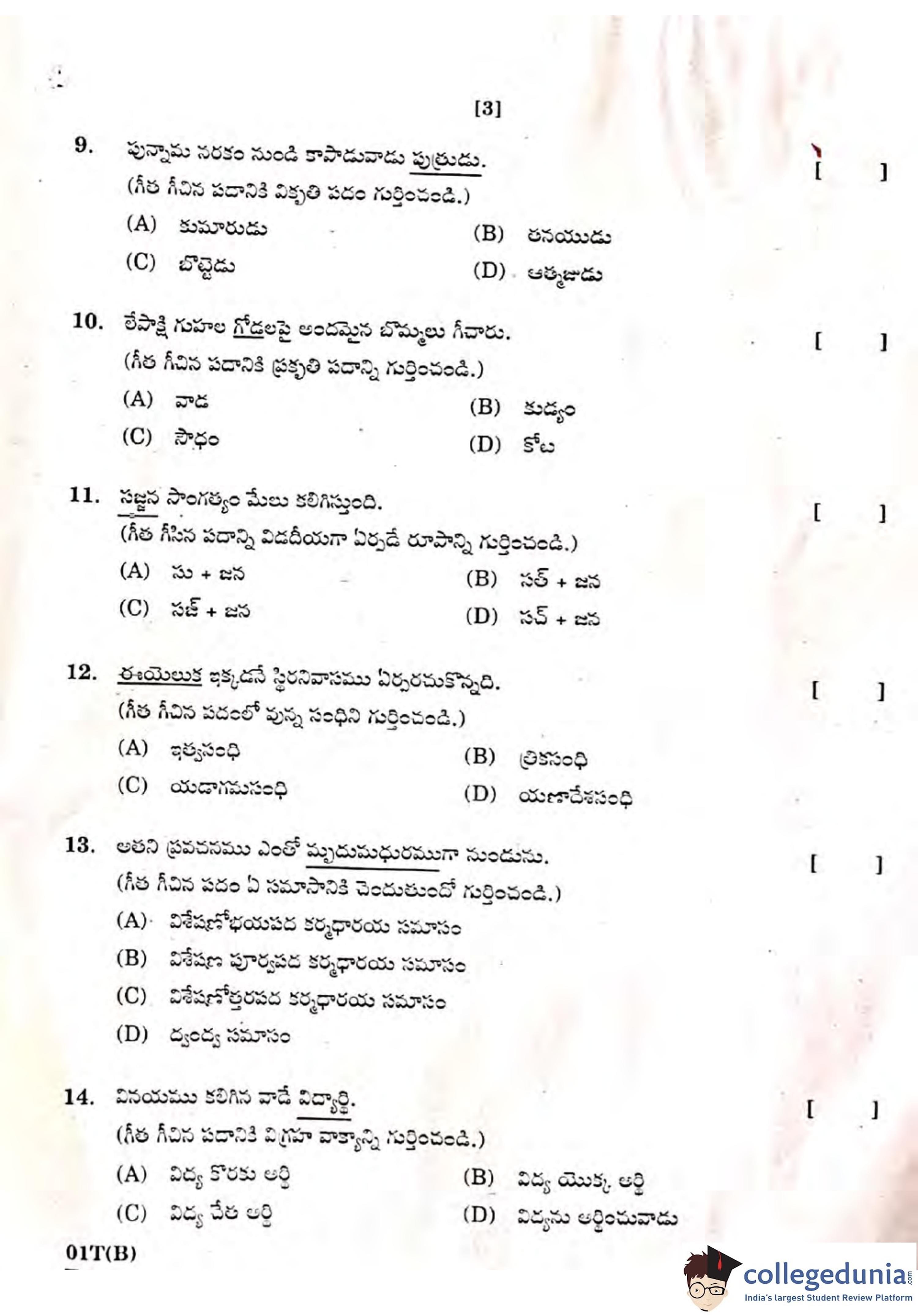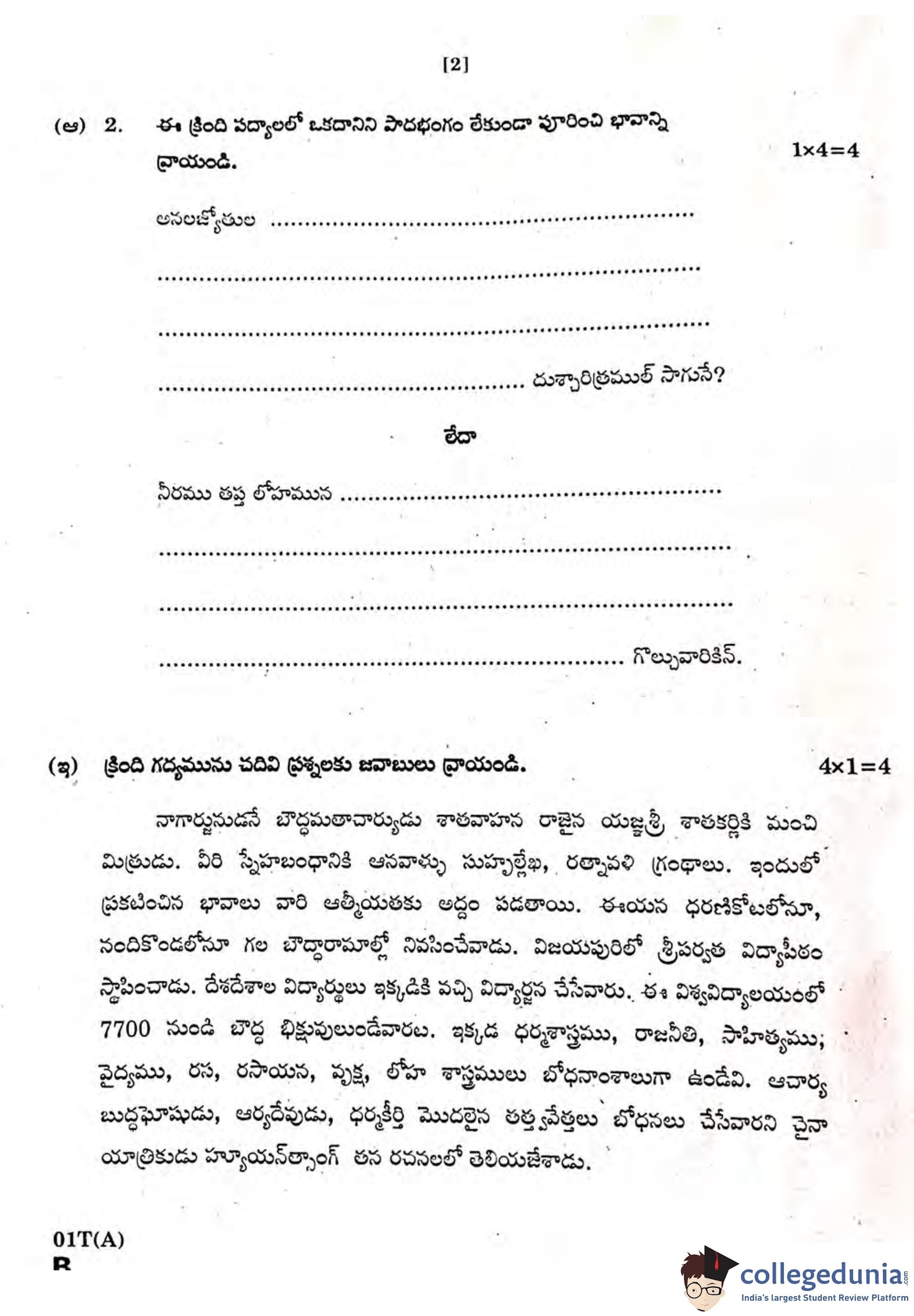 AP SSC Telugu Paper I Question Paper 2019 with Answer Key