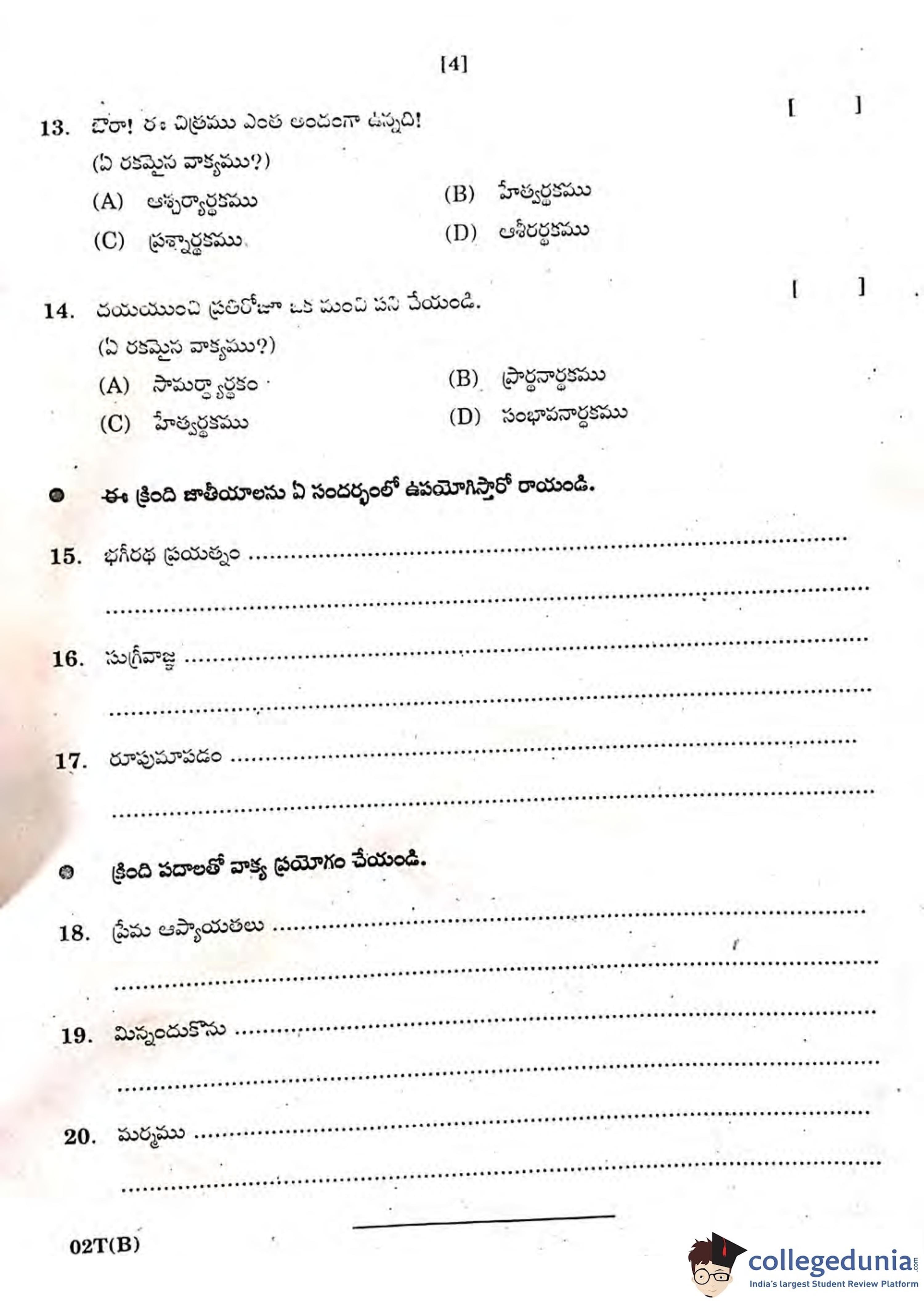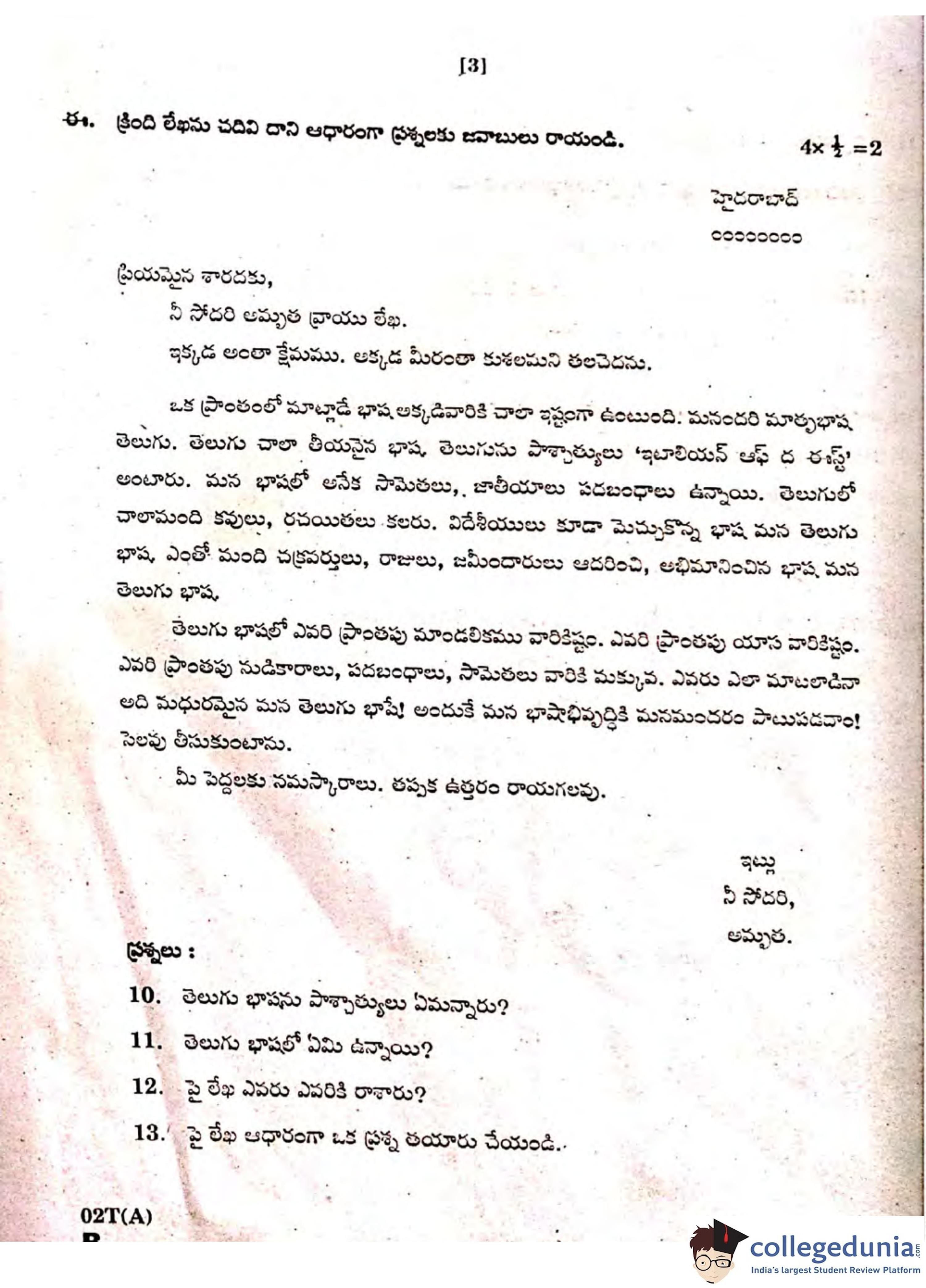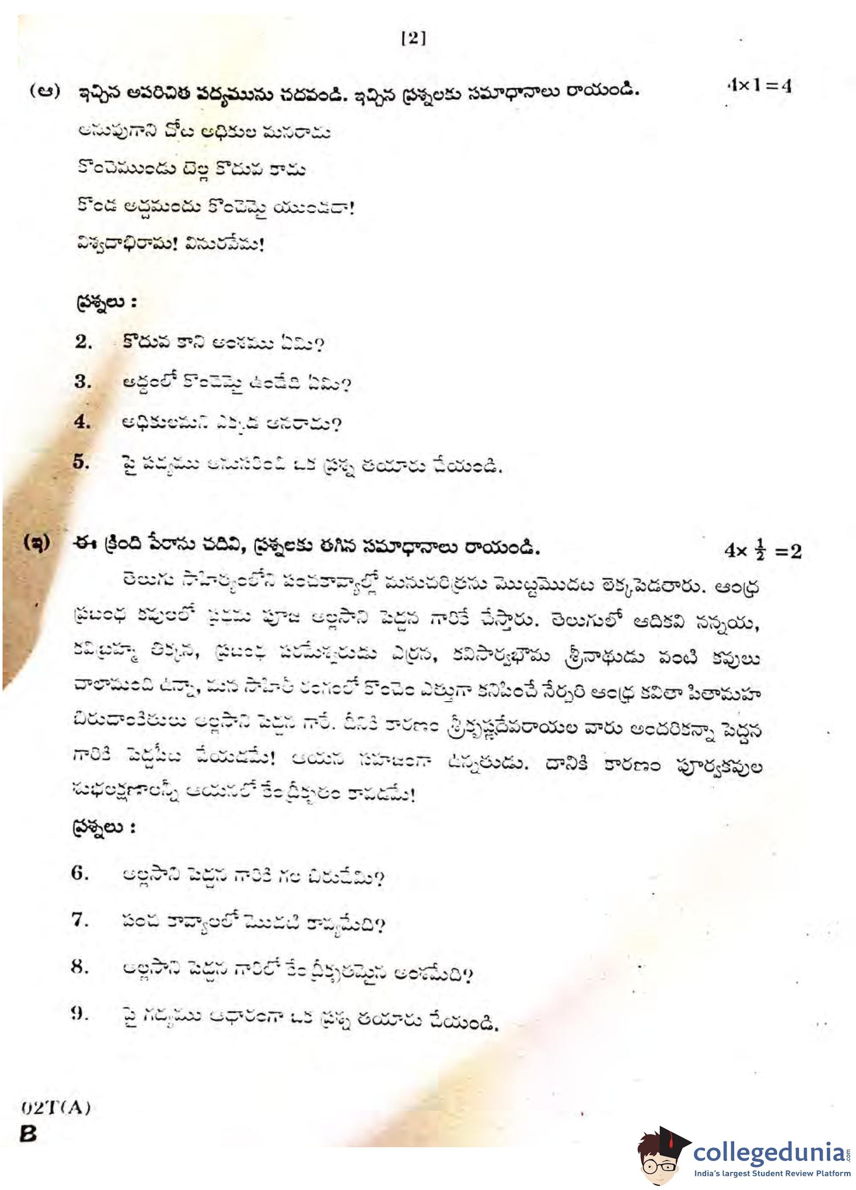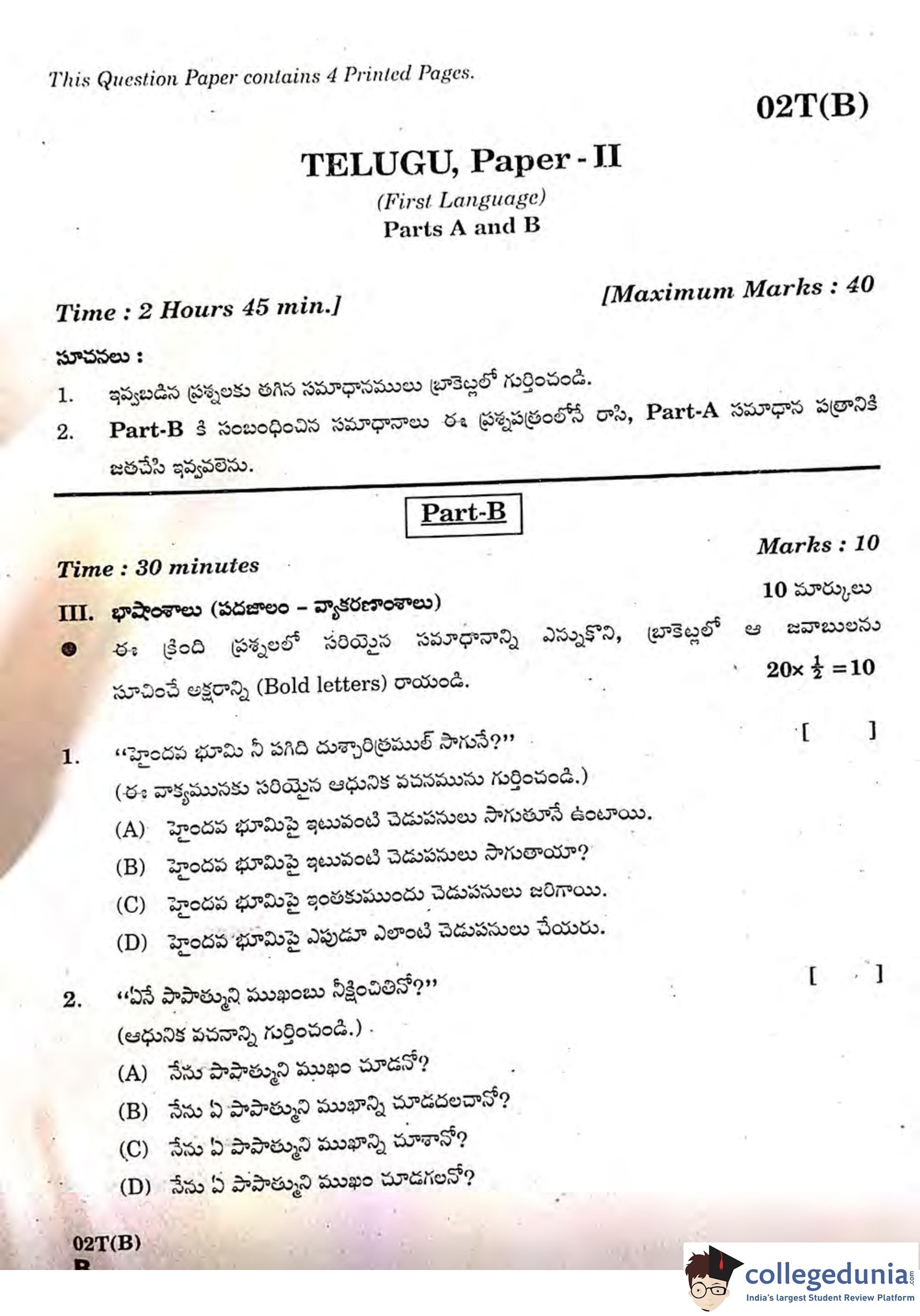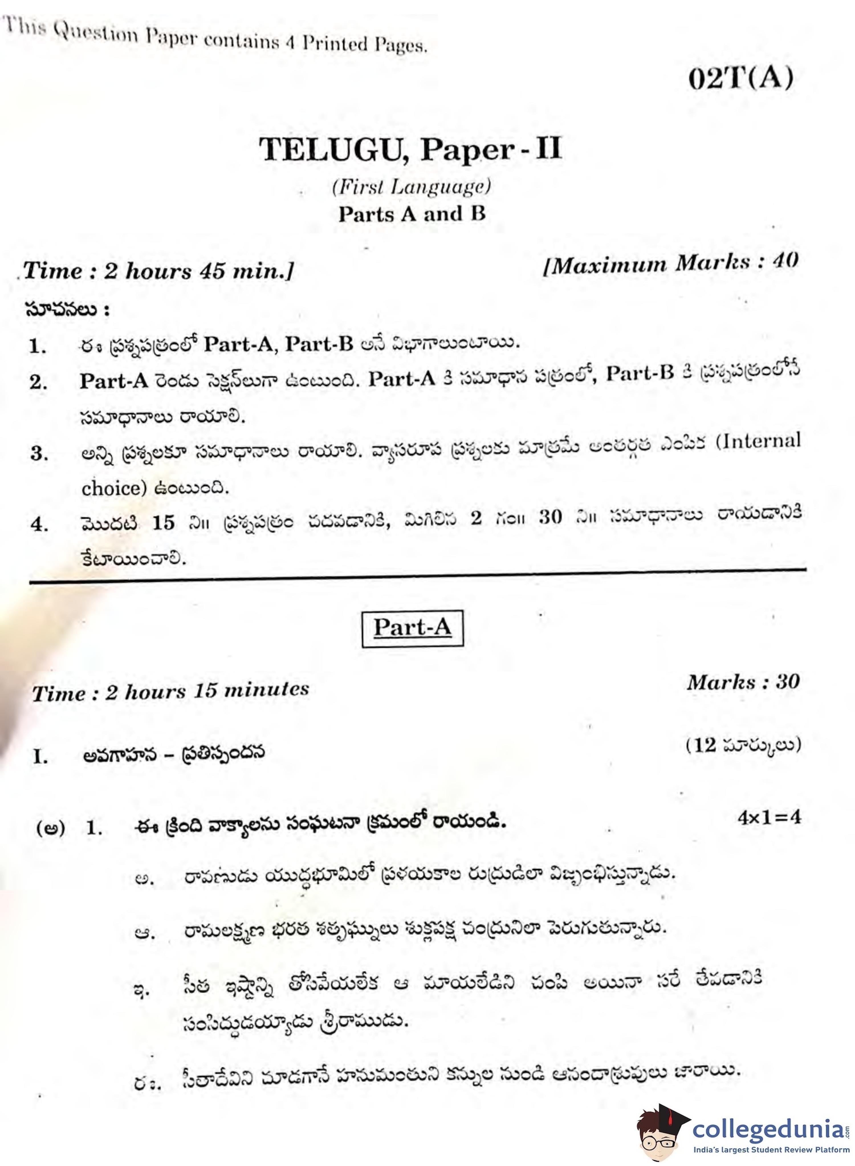 AP SSC 2019 Telugu II Question Paper with Answer Key PDF is available for download. The exam was successfully conducted on March 19, 2019 by Board of Secondary Education of Andhra Pradesh. According to initial student reaction, AP SSC Telugu Paper II was rated as Easy to Moderate in difficulty level. The question paper comprised a total of 20 questions divided into two parts.