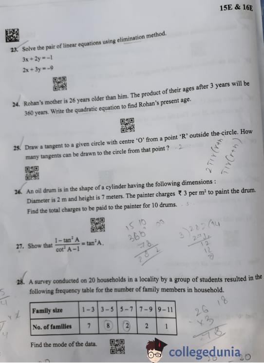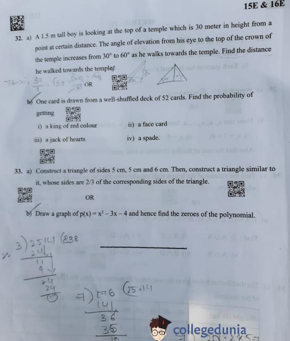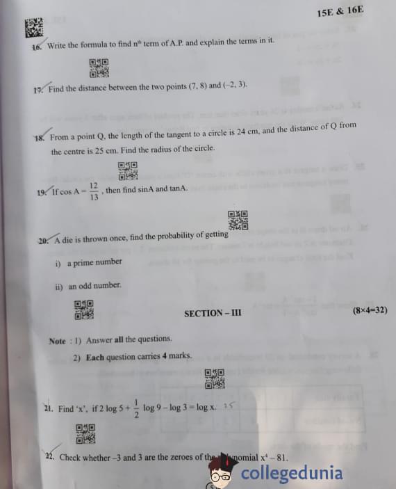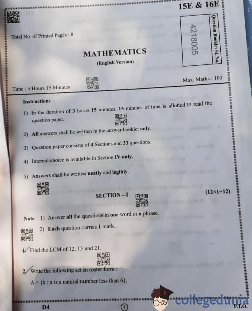 AP SSC 2023 Mathematics Question Paper with Answer Key PDF is available for download. The exam was successfully conducted on April 12, 2023 by the Board of Secondary Education of Andhra Pradesh. According to initial student reaction, AP SSC Mathematics paper was rated as Easy to Moderate in difficulty level. The question paper comprised a total of 33 questions divided into 4 parts.