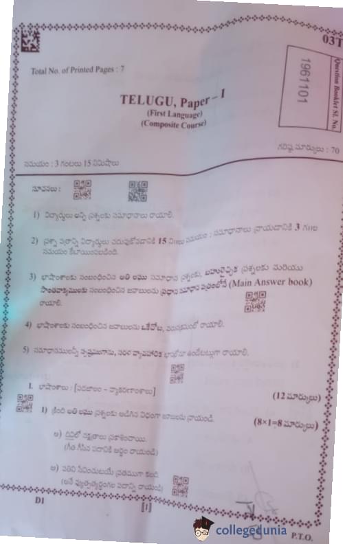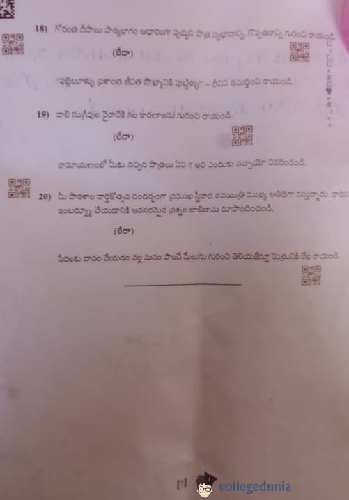 AP SSC 2023 Telugu (Paper 1) Question Paper with Answer Key PDF is available for download. The exam was successfully conducted on April 12, 2023 by Board of Secondary Education of Andhra Pradesh. According to initial student reaction, AP SSC Telugu (Paper 1) paper was rated as Easy to Moderate in difficulty level. The question paper comprised a total of 20 questions.