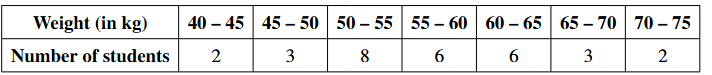 a) The distribution below gives the weights of 30 students of a class. Find the median weight of the students.