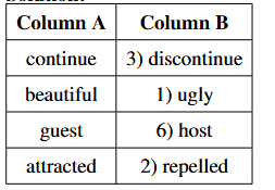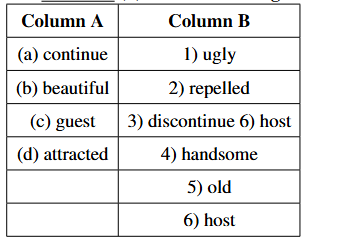 Read the following paragraph and match the words given in Column A with their antonyms in Column B.