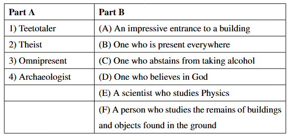 Match the following one word substitutes in Part - A with their meanings in Part - B.