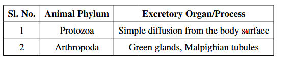 In the phylum Protozoa, the process of excretion occurs through simple diffusion. Waste materials such as ammonia diffuse directly across the body surface into the surrounding environment. Quick Tip: Protozoa lack specialized excretory organs; instead, they rely on diffusion for the removal of metabolic wastes.