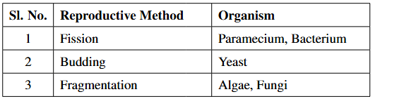 As per the table, organisms that perform fission include Paramecium and Bacterium. These unicellular organisms reproduce by splitting into two daughter cells, ensuring rapid population growth. Quick Tip: Fission is a rapid form of asexual reproduction that occurs in unicellular organisms such as bacteria and protozoa.