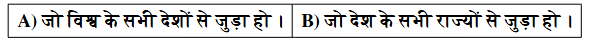 "рдЕрдВрддрд░реНрдЧрд╖реНрдЯреНрд░реАрдп" рдХрд╛ рдЕрд░реНрде рд╣реИ "рдЬреЛ рджреЗрд╢ рдХреЗ рд╕рднреА рд░рд╛рдЬреНрдпреЛрдВ рд╕реЗ рдЬреБрдбрд╝рд╛ рд╣реЛ", рдЕрддрдГ рд╕рд╣реА рдЙрддреНрддрд░ рд╣реИ: B) рдЬреЛ рджреЗрд╢ рдХреЗ рд╕рднреА рд░рд╛рдЬреНрдпреЛрдВ рд╕реЗ рдЬреБрдбрд╝рд╛ рд╣реЛред Quick Tip: "рдЕрдВрддрд░реНрд░рд╛рд╖реНрдЯреНрд░реАрдп" рдФрд░ "рдЕрдВрддрд░реНрдЧрд╖реНрдЯреНрд░реАрдп" рдореЗрдВ рдЕрдВрддрд░ рд╕рдордЭреЗрдВред "рдЕрдВрддрд░реНрд░рд╛рд╖реНрдЯреНрд░реАрдп" рдХрд╛ рдЕрд░реНрде рд╡реИрд╢реНрд╡рд┐рдХ рд╕реНрддрд░ рдкрд░ рд╣реЛрддрд╛ рд╣реИ, рдЬрдмрдХрд┐ "рдЕрдВрддрд░реНрдЧрд╖реНрдЯреНрд░реАрдп" рдХрд╛ рд╕рдВрдмрдВрдз рдХрд┐рд╕реА рджреЗрд╢ рдХреЗ рдЖрдВрддрд░рд┐рдХ рд░рд╛рдЬреНрдпреЛрдВ рд╕реЗ рд╣реЛрддрд╛ рд╣реИред