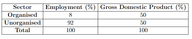 Quick Tip: Despite the unorganised sector employing a large proportion of the workforce, the organised sector contributes a higher percentage to the Gross Domestic Product (GDP).