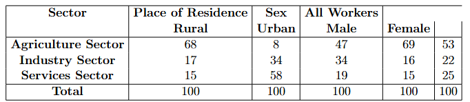 Quick Tip: The table illustrates the distribution of workers across sectors, regions, and genders, showing the significant role of agriculture in rural areas and the growing importance of services in urban areas.