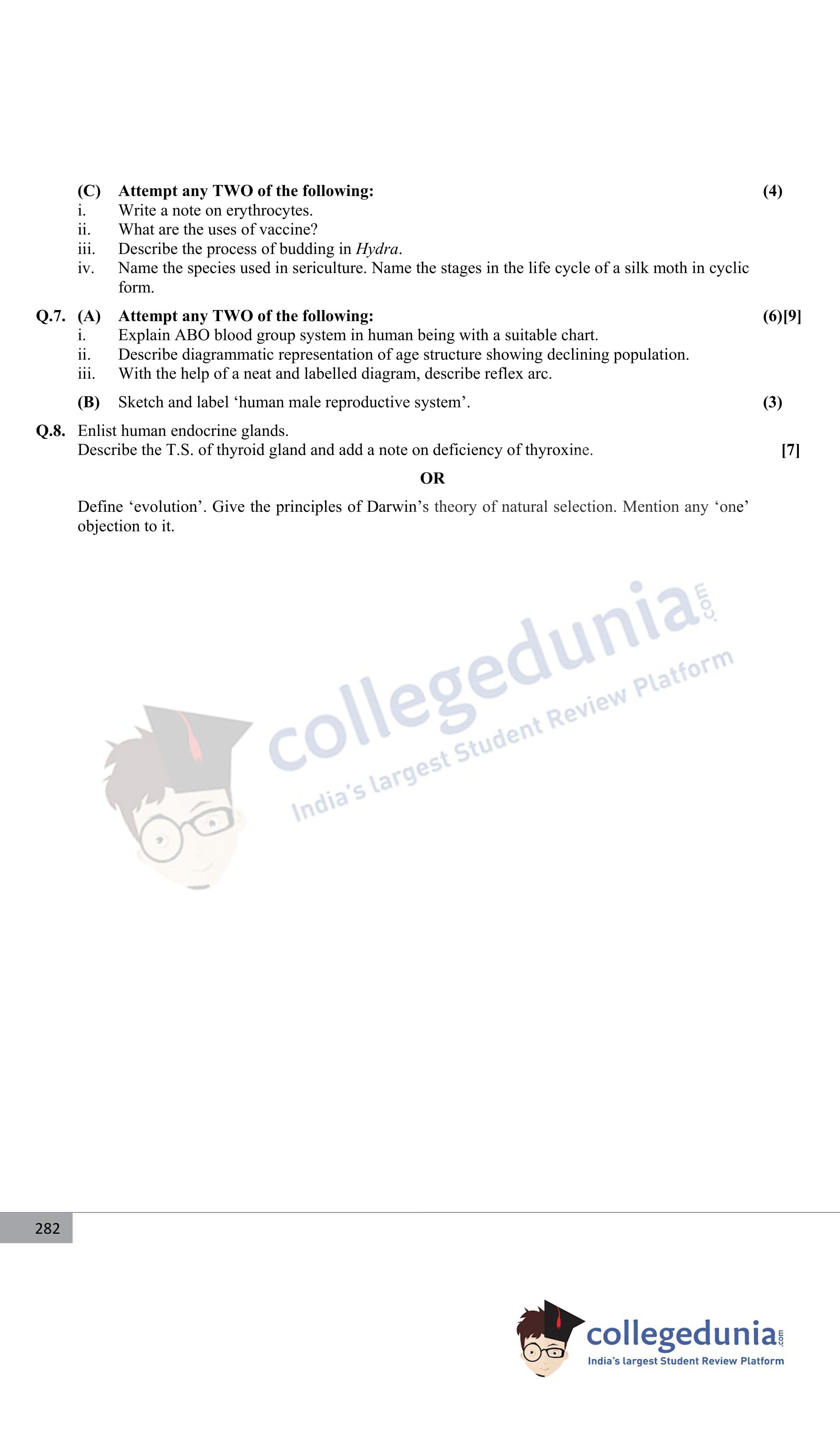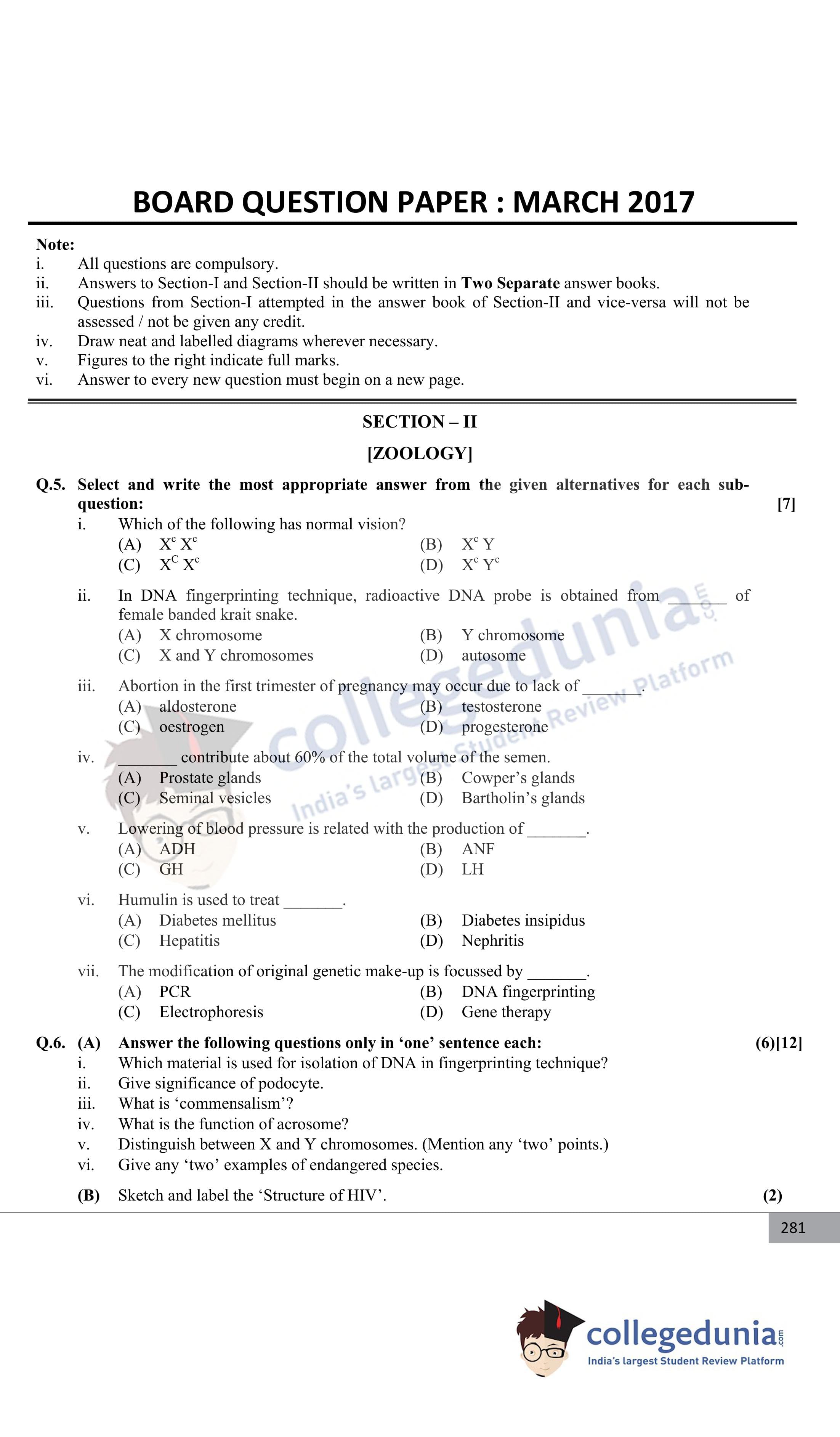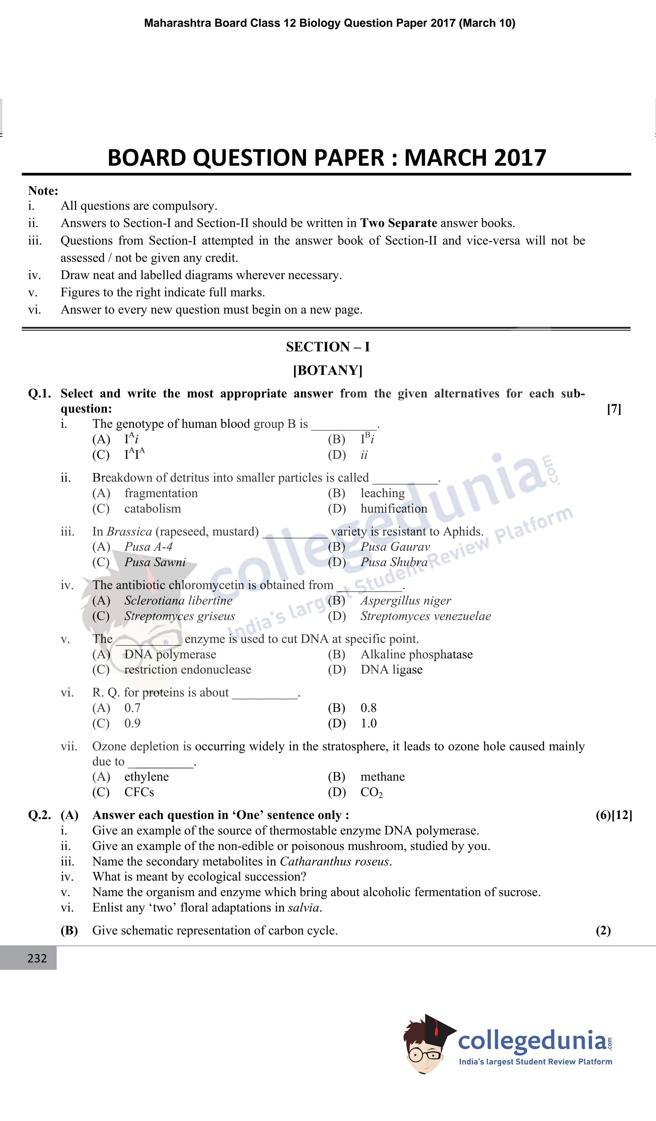 Maharashtra Board Class 12 Biology Question Paper 2017 with Answer Key (March 10)