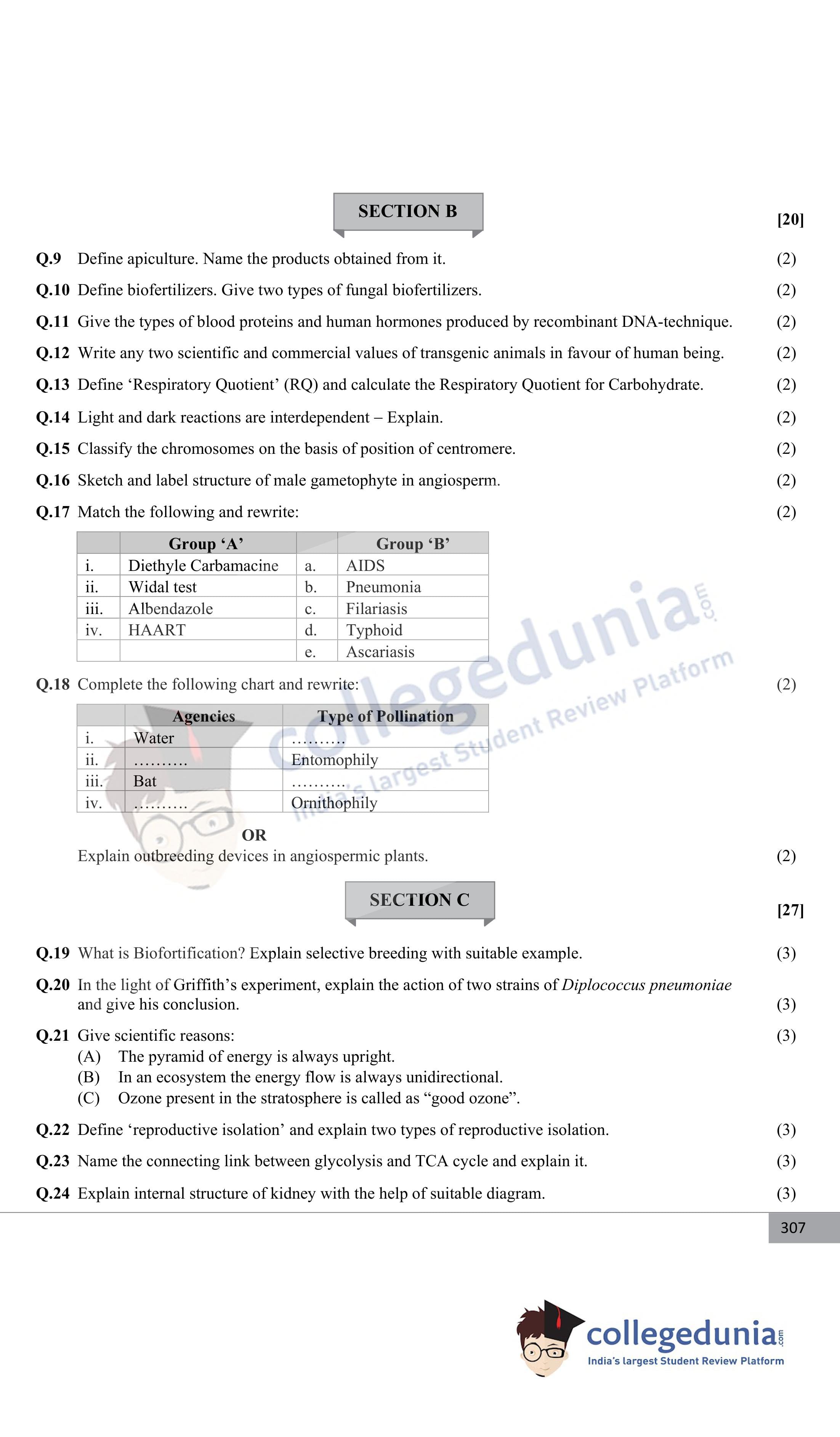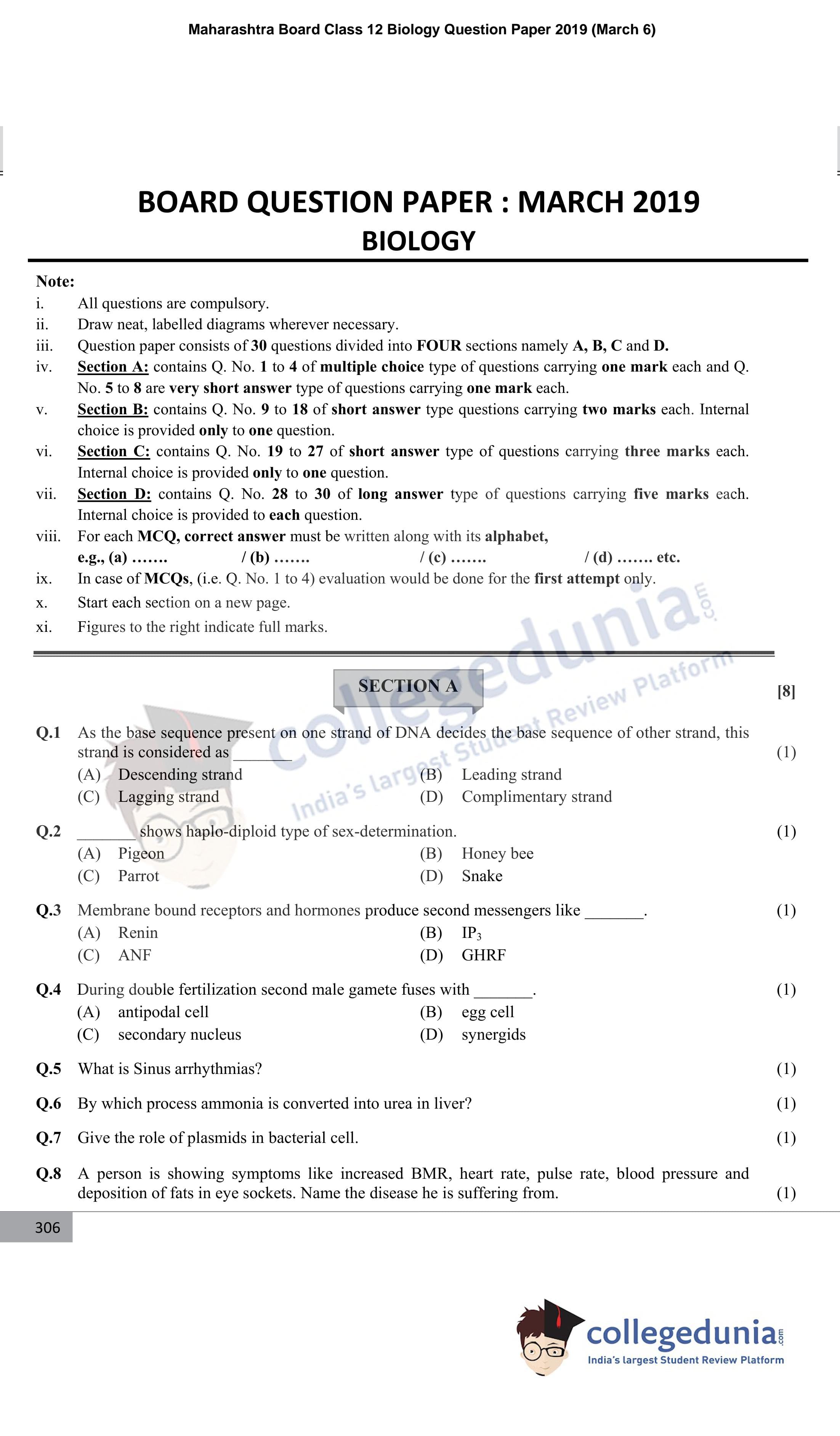 Maharashtra Board Class 12 Biology Question Paper 2019 with Answer Key (March 6)