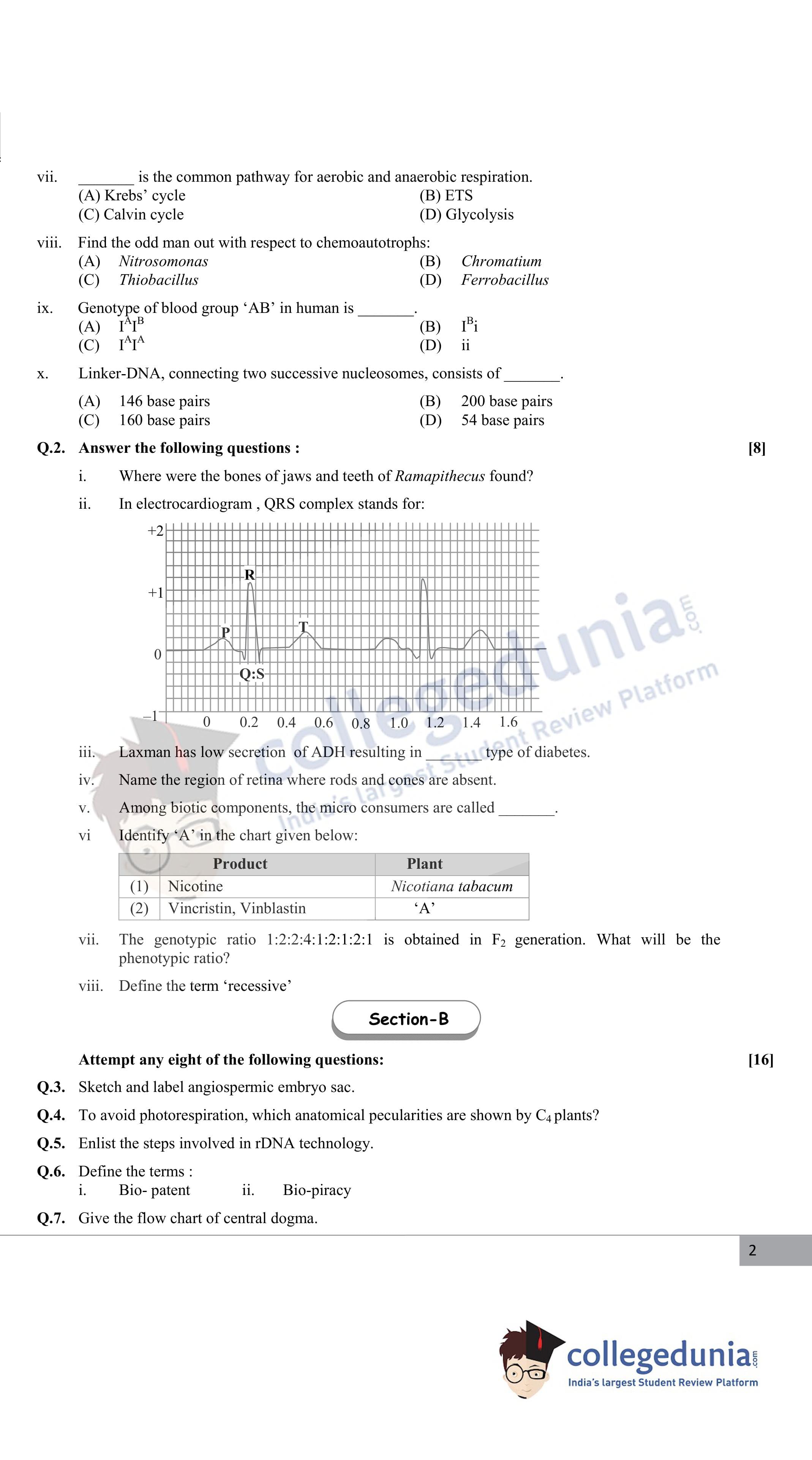 Maharashtra Board Class 12 Biology Question Paper 2020 with Answer Key (March 2)