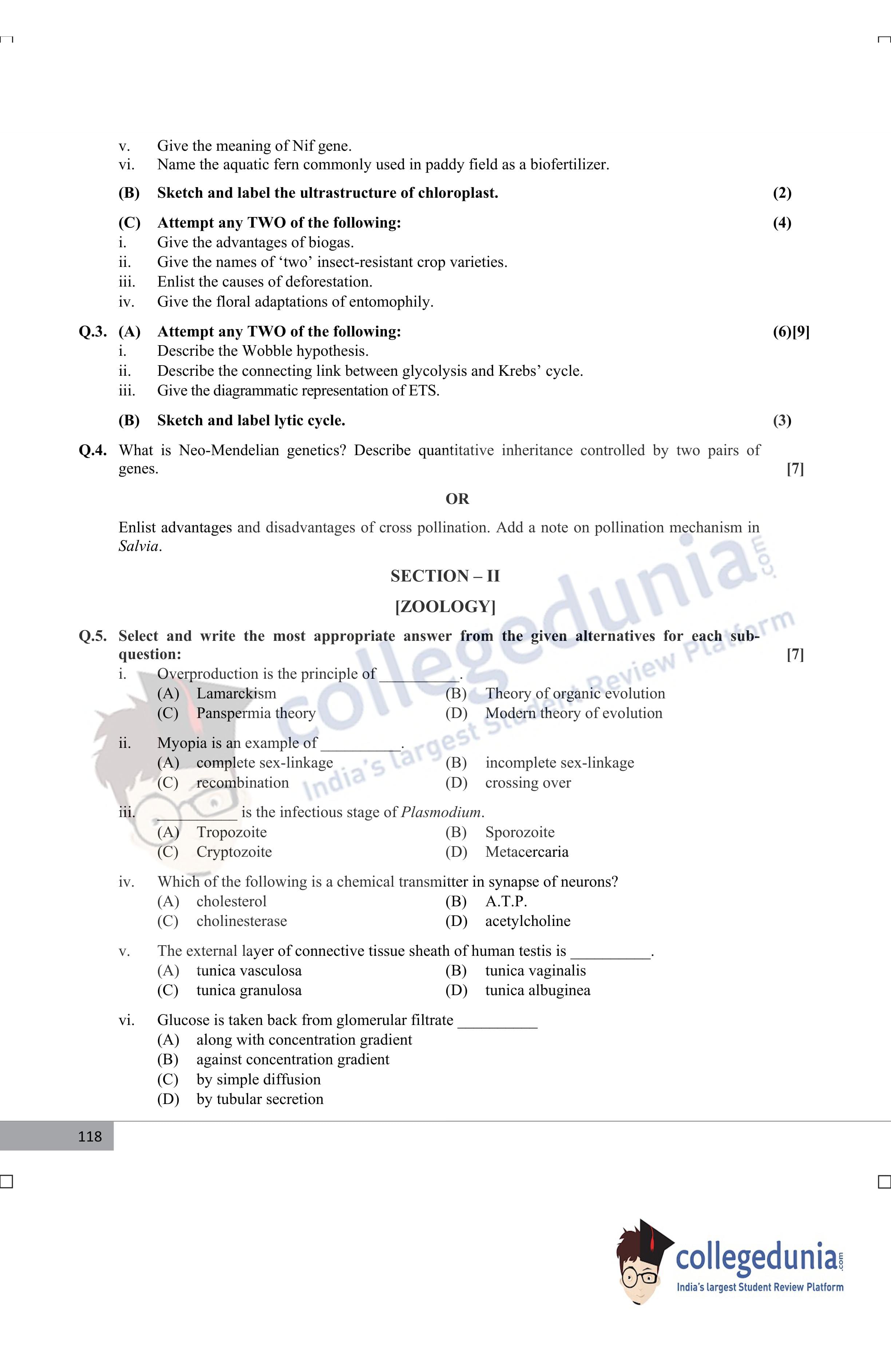 Maharashtra Board Class 12 Biology Supplementary Question Paper 2017 with Answer Key is available for download. The exam was conducted by the Maharashtra State Board of Secondary & Higher Secondary Education (MSBSHSE) . The medium of paper was English. The question paper comprised a total of 8 questions divided among 2 sections.