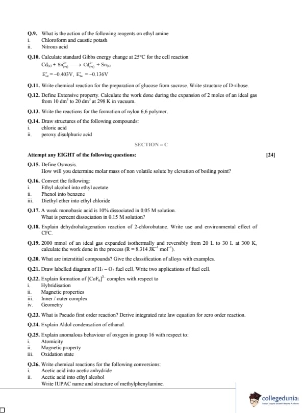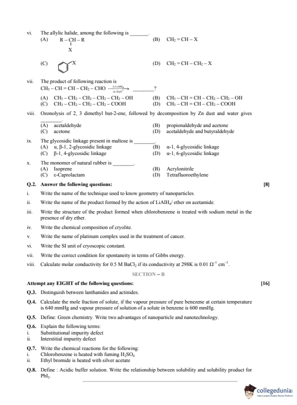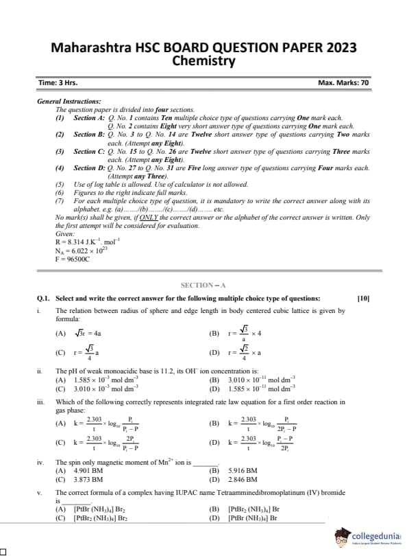 | Maharashtra Board Class 12 Chemistry Question Paper 2023 with Answer Key | Check Solution |