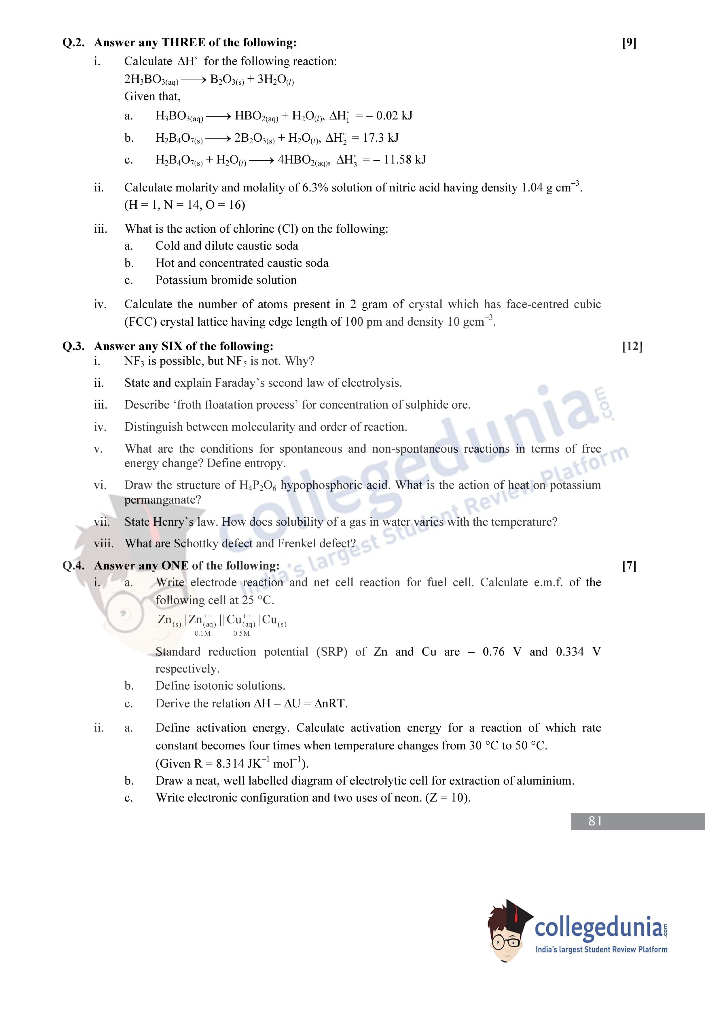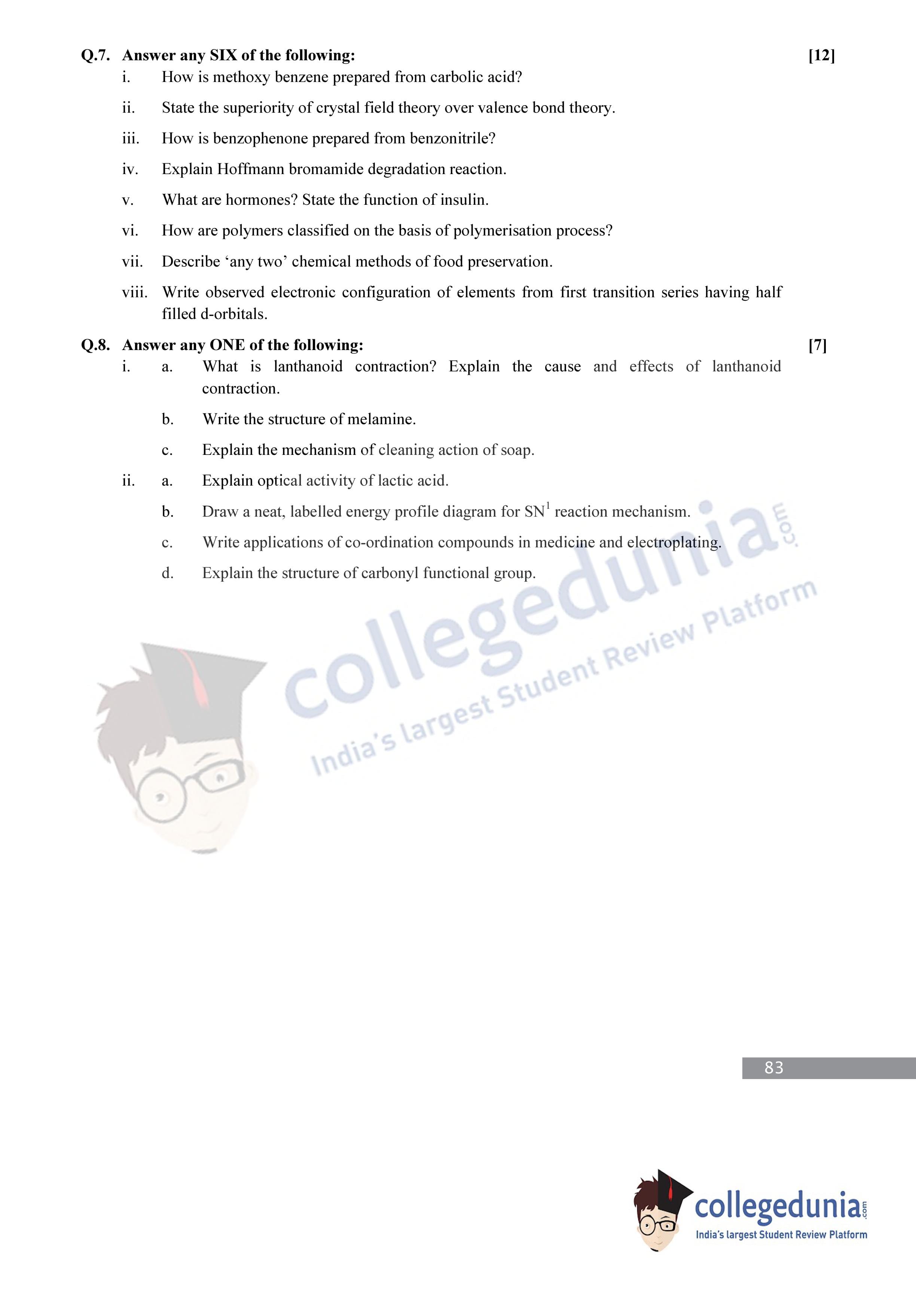 Maharashtra Board Class 12 Chemistry Supplementary Question Paper 2013 with Answer Key is available for download. The exam was conducted by the Maharashtra State Board of Secondary & Higher Secondary Education (MSBSHSE). The medium of paper was English. The question paper comprised a total of 8 questions divided among 2 sections.