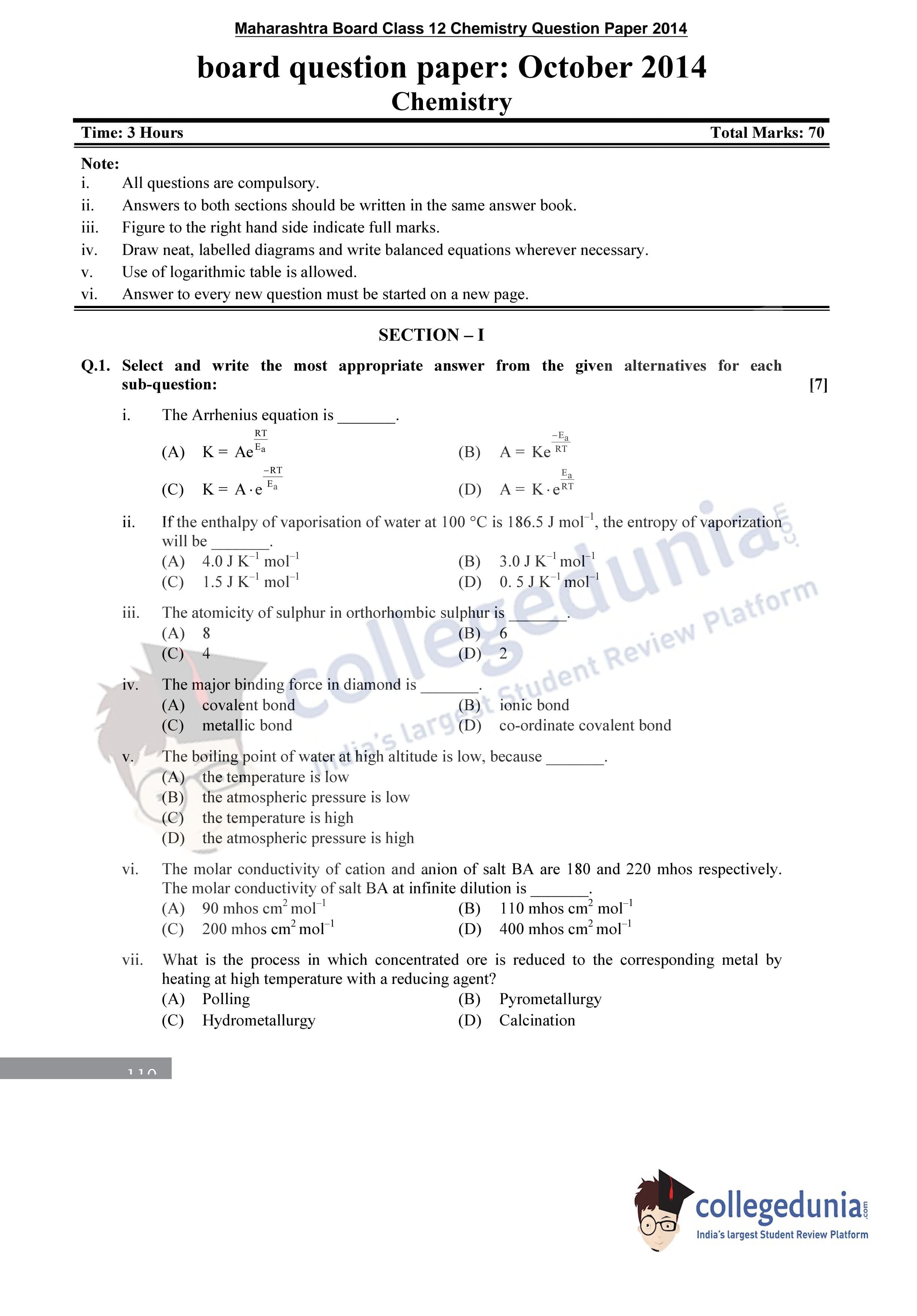 | Maharashtra Board Class 12 Chemistry Question Paper 2014 PDF | Maharashtra Board Class 12 Chemistry Answer Key 2014 PDF |