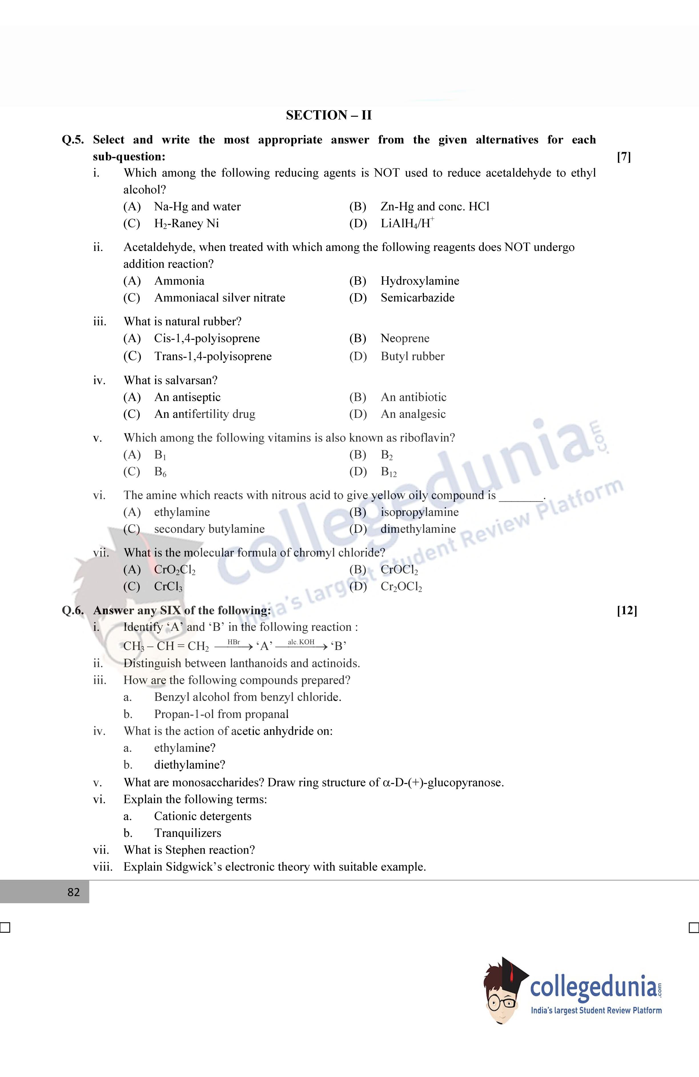 Maharashtra Board Class 12 Chemistry Supplementary Question Paper 2015 with Answer Key is available for download. The exam was conducted by the Maharashtra State Board of Secondary & Higher Secondary Education (MSBSHSE). The medium of paper was English. The question paper comprised a total of 8 questions divided among 2 sections.