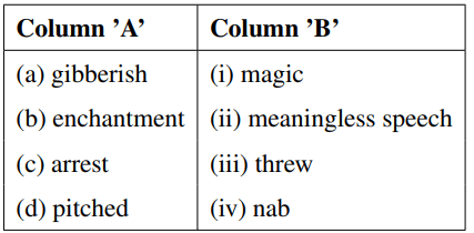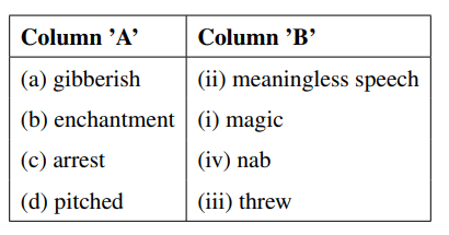 A6. Vocabulary: Match the words in column 'A' with their meanings in column 'B'.