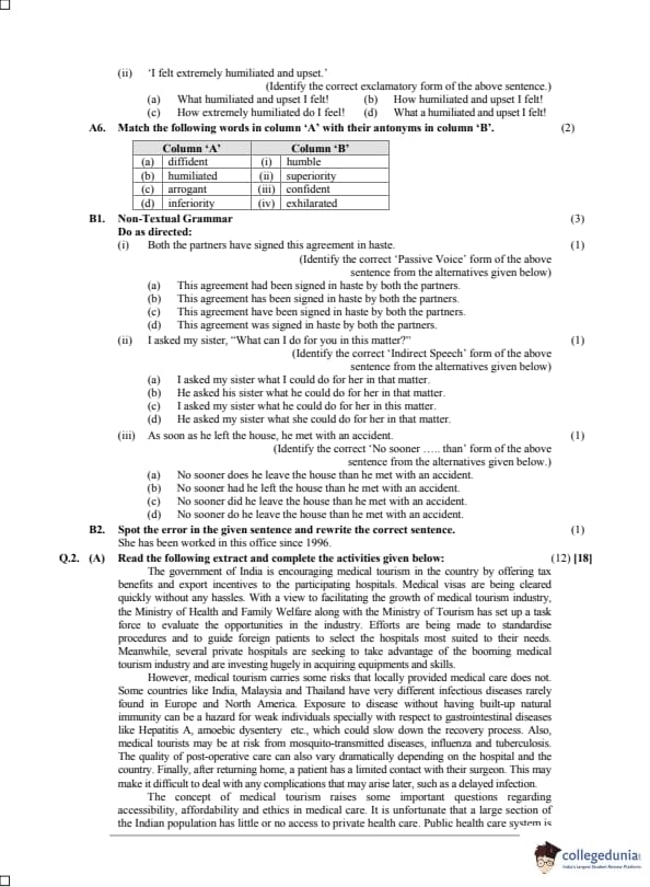 Maharashtra Board Class 12 English Question Paper 2023 with Answer Key pdf is available for download here. The exam was conducted by Maharashtra State Board of Secondary & Higher Secondary Education (MSBSHSE) on February 21, 2023 in the Forenoon Session 11 AM to 2 PM. The question paper comprised a total of 5 questions divided among 4 sections.