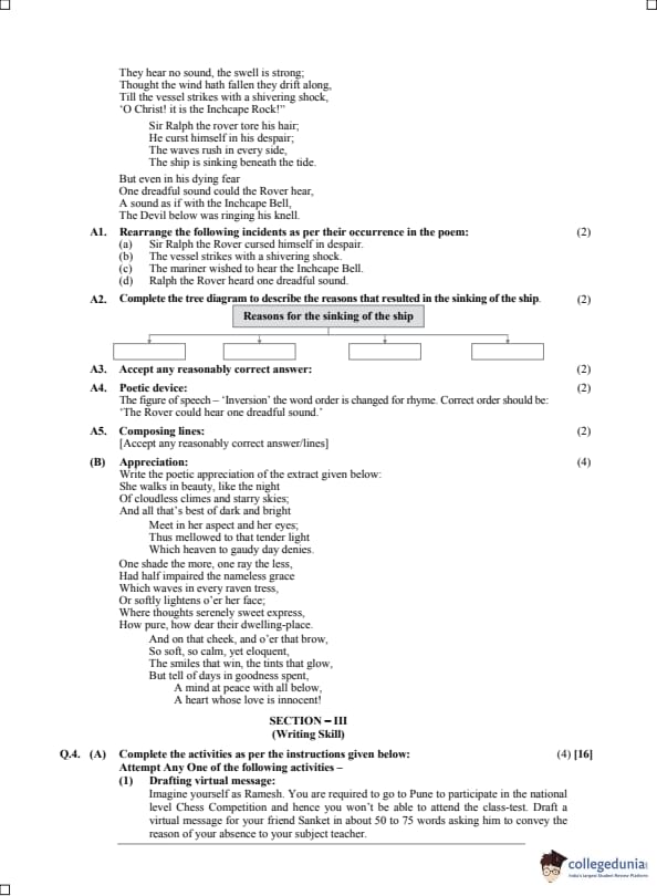 Maharashtra Board Class 12 English 2023 Question Paper with Answer Key
