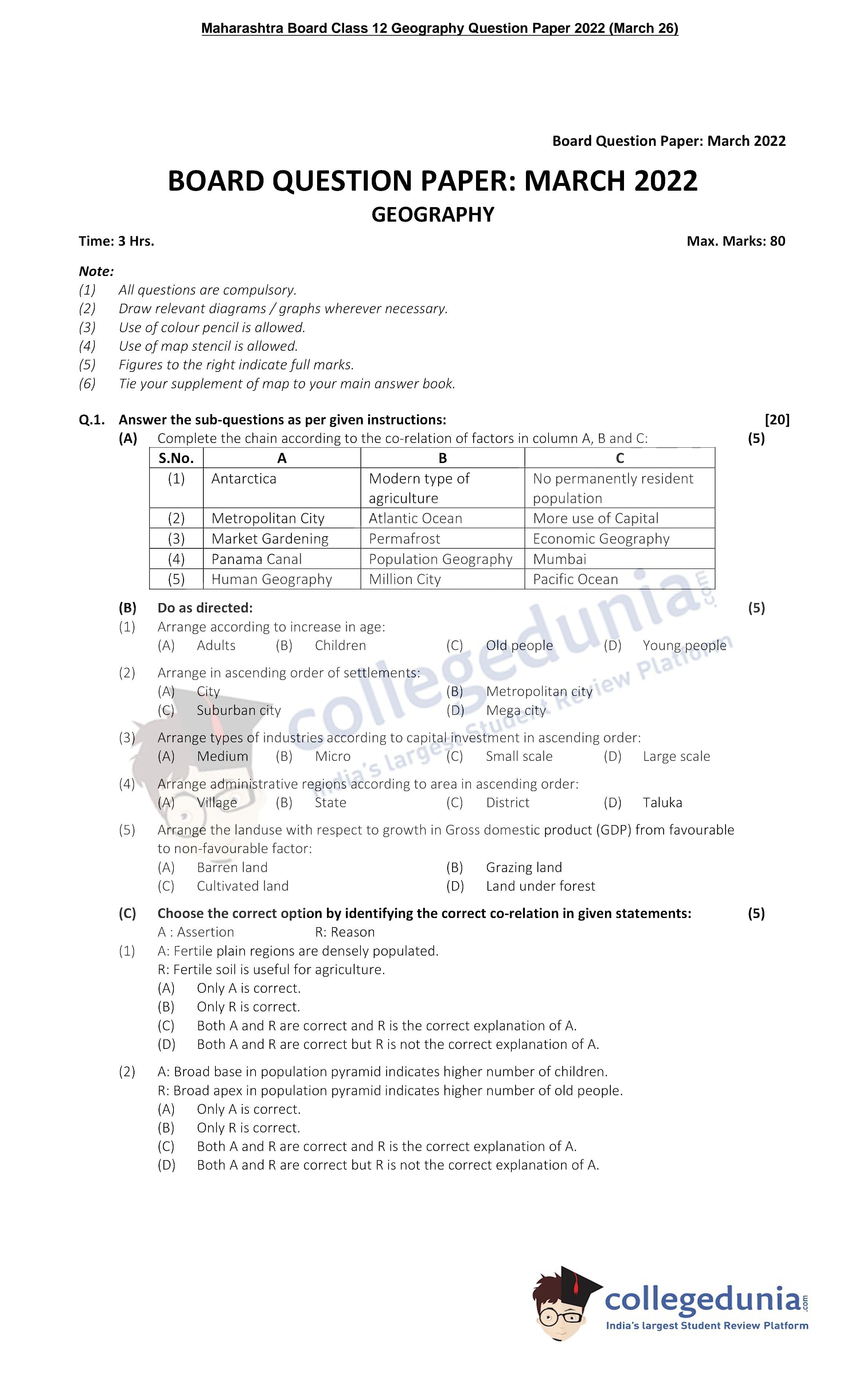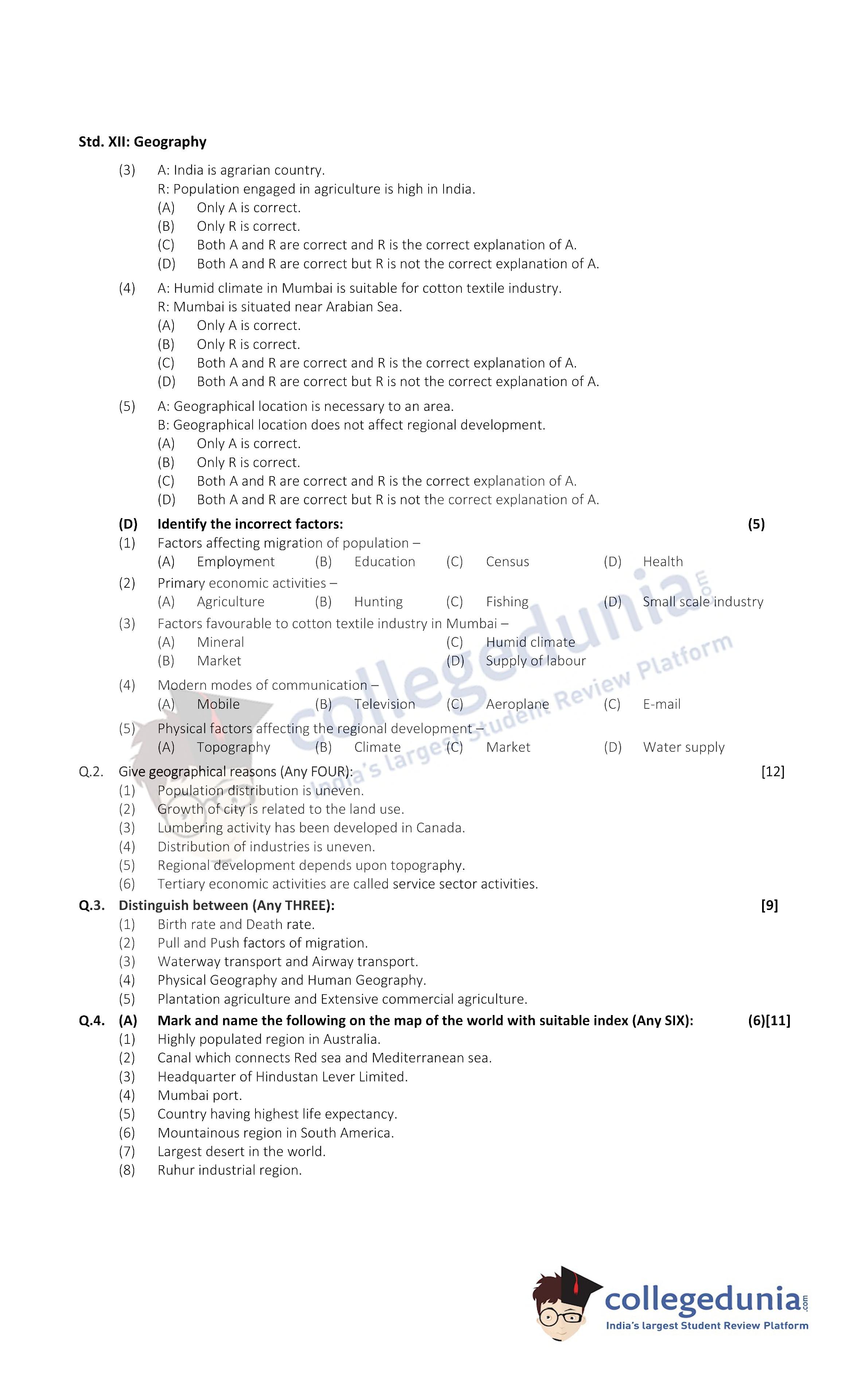 | Maharashtra Board Class 12 Geography Question Paper 2022 with Answer Key | Check Solution |