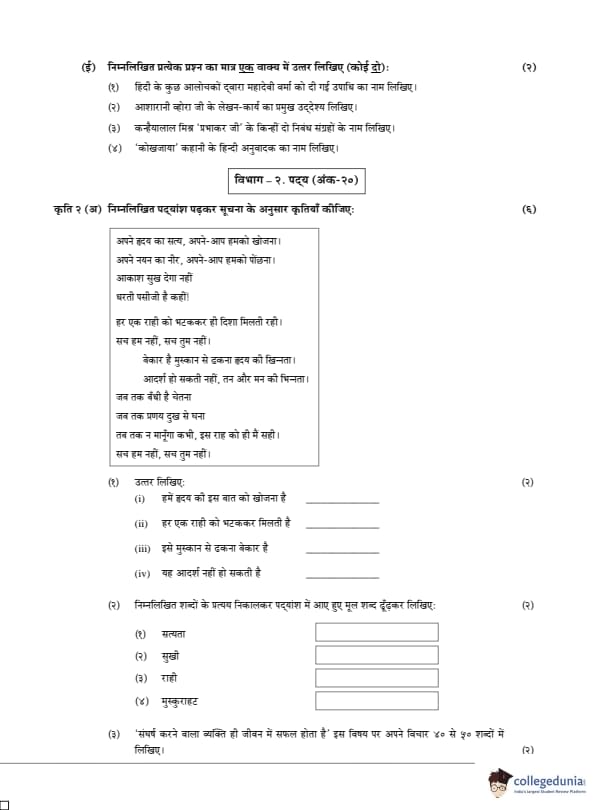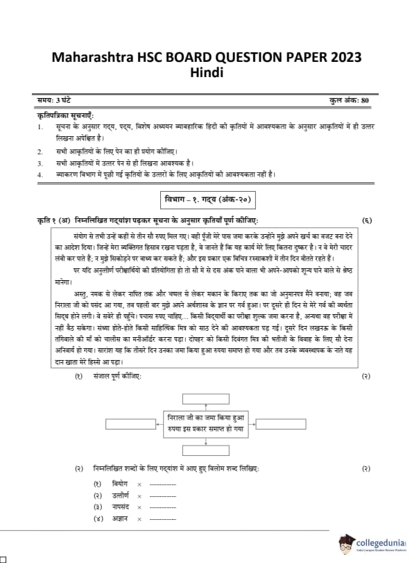 | Maharashtra Board Class 12 Hindi Question Paper 2023 with Answer Key | Check Solution |
