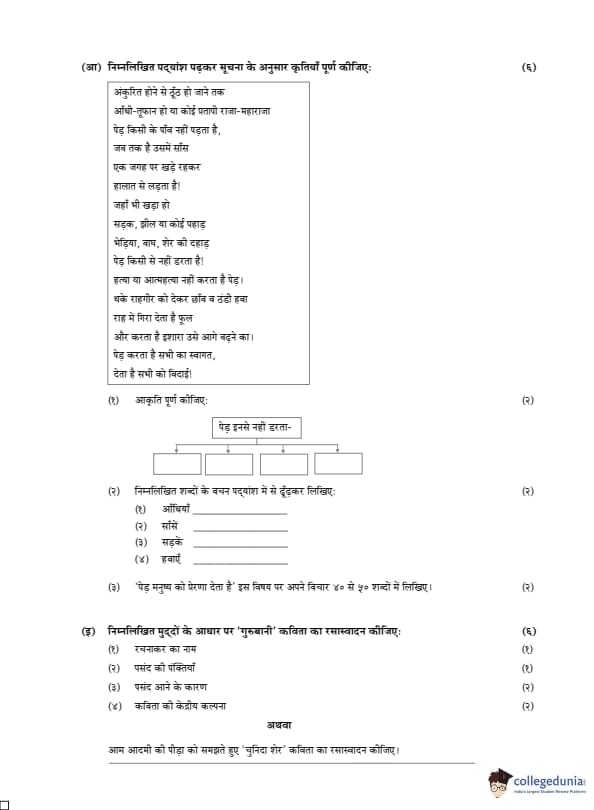 (३) 'पेड़ मनुष्य को प्रेरणा देता है' इस विषय पर अपने विचार ४० से ५० शब्दों में लिखिए।