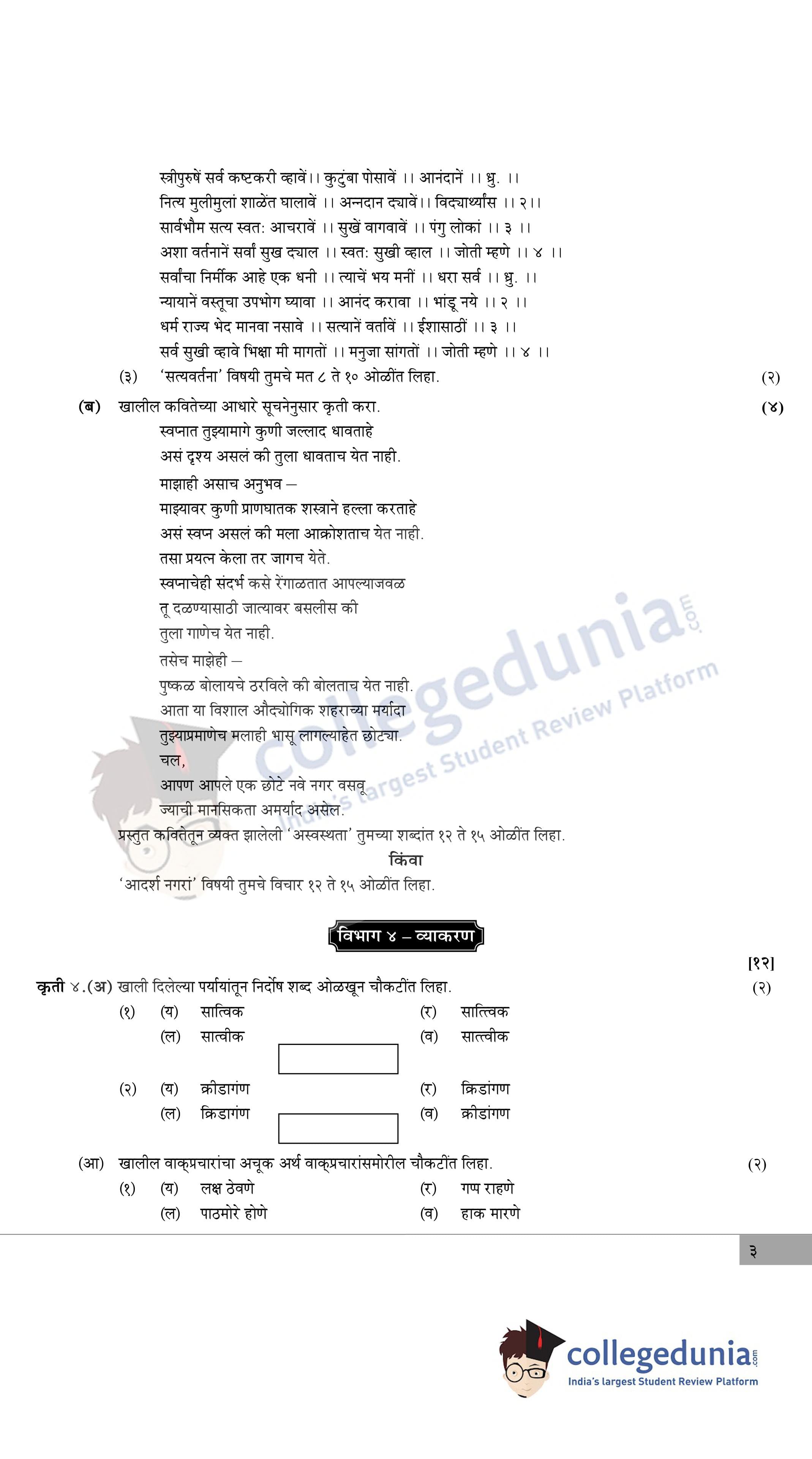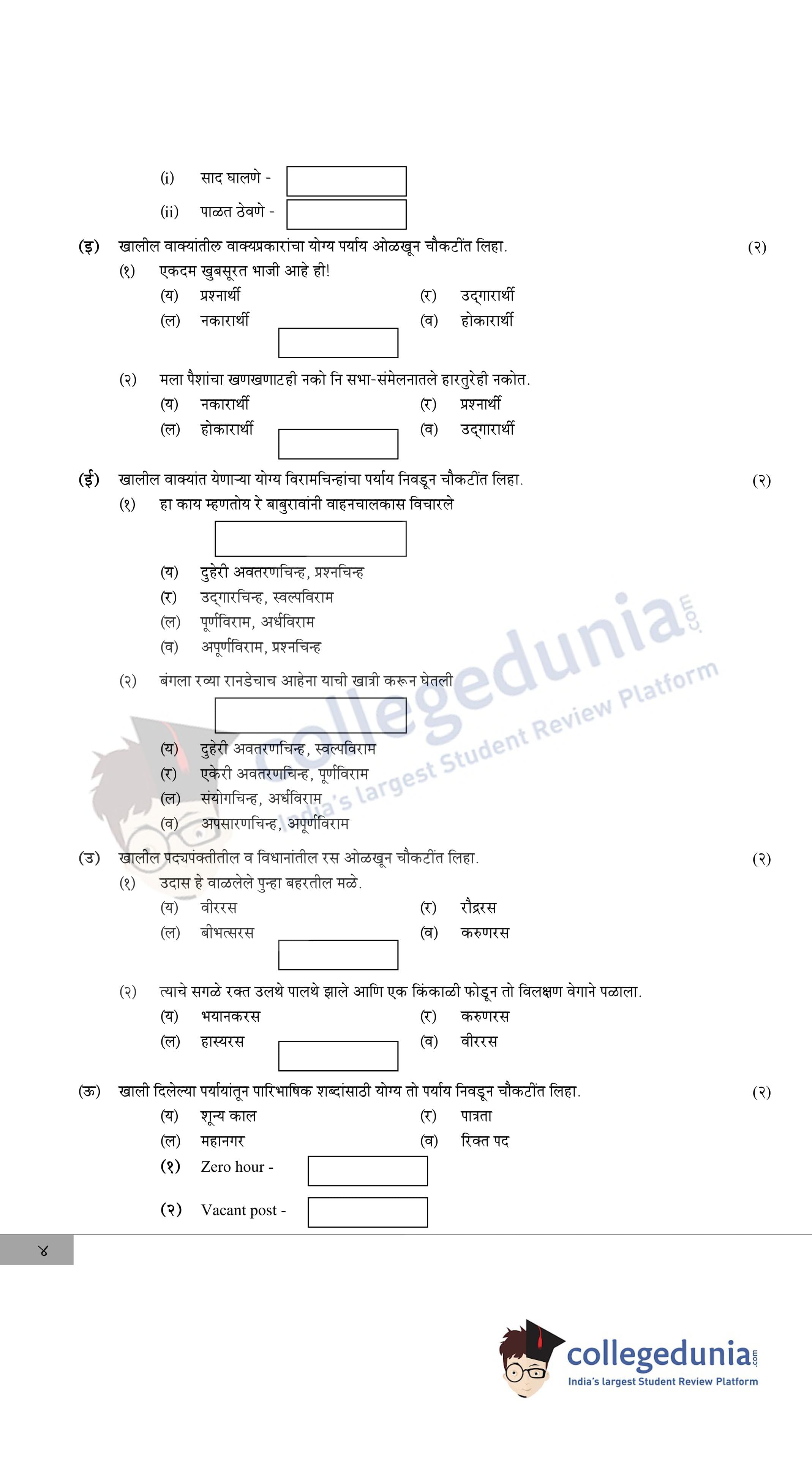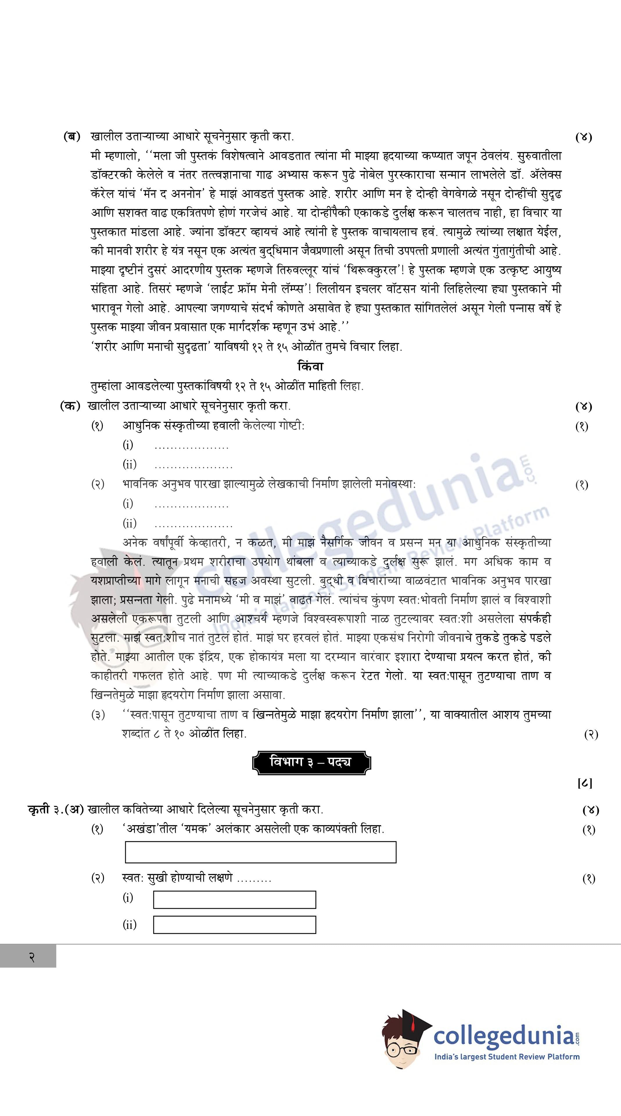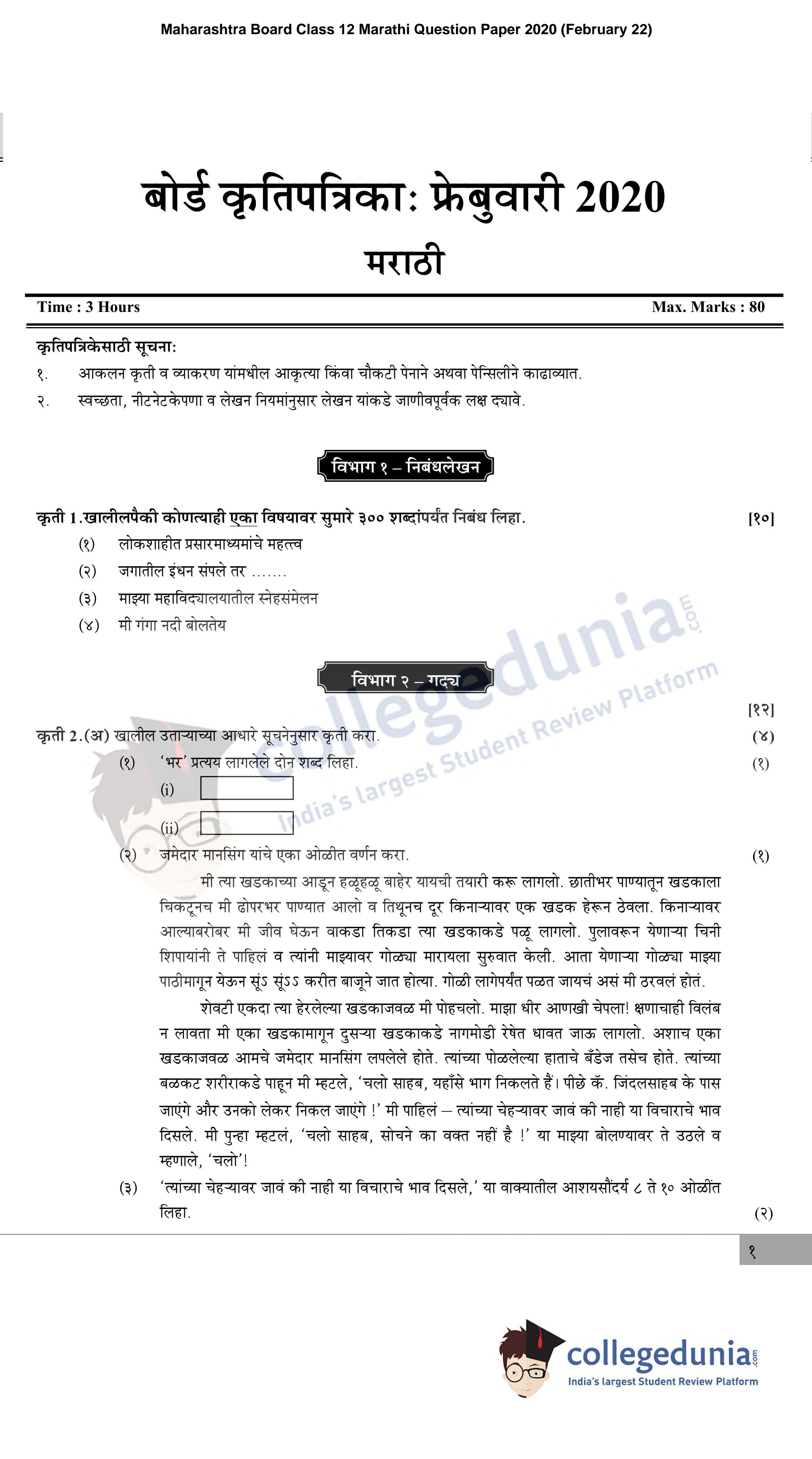Maharashtra Board Class 12 Marathi Question Paper 2020 with Answer Key (February 22)