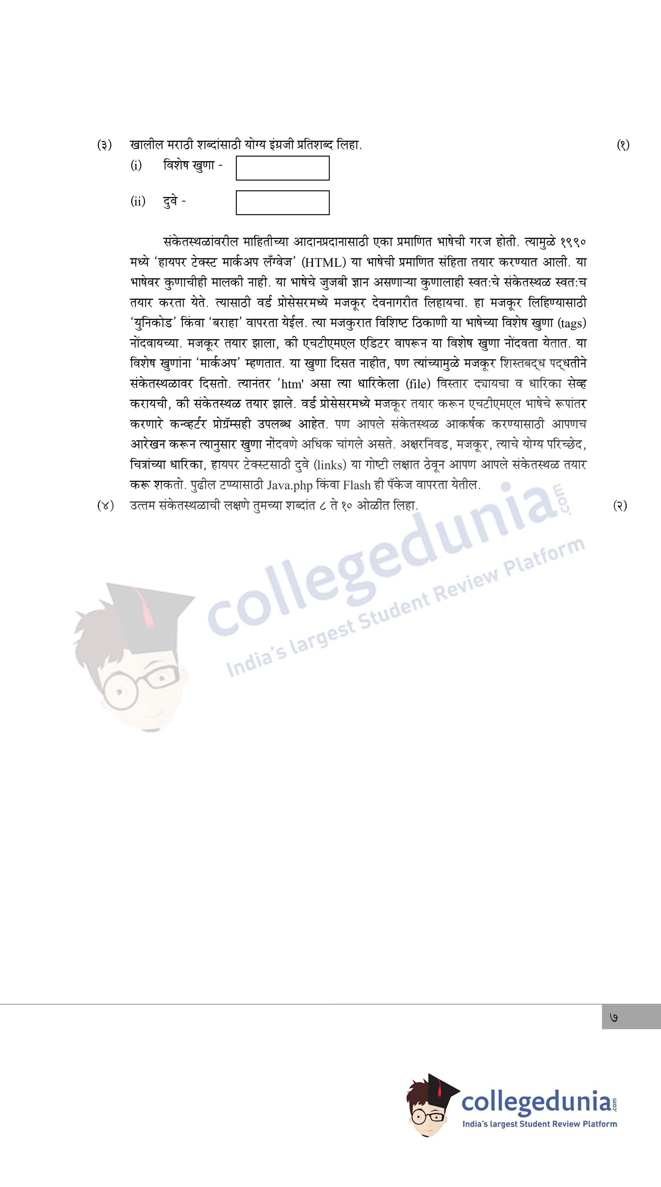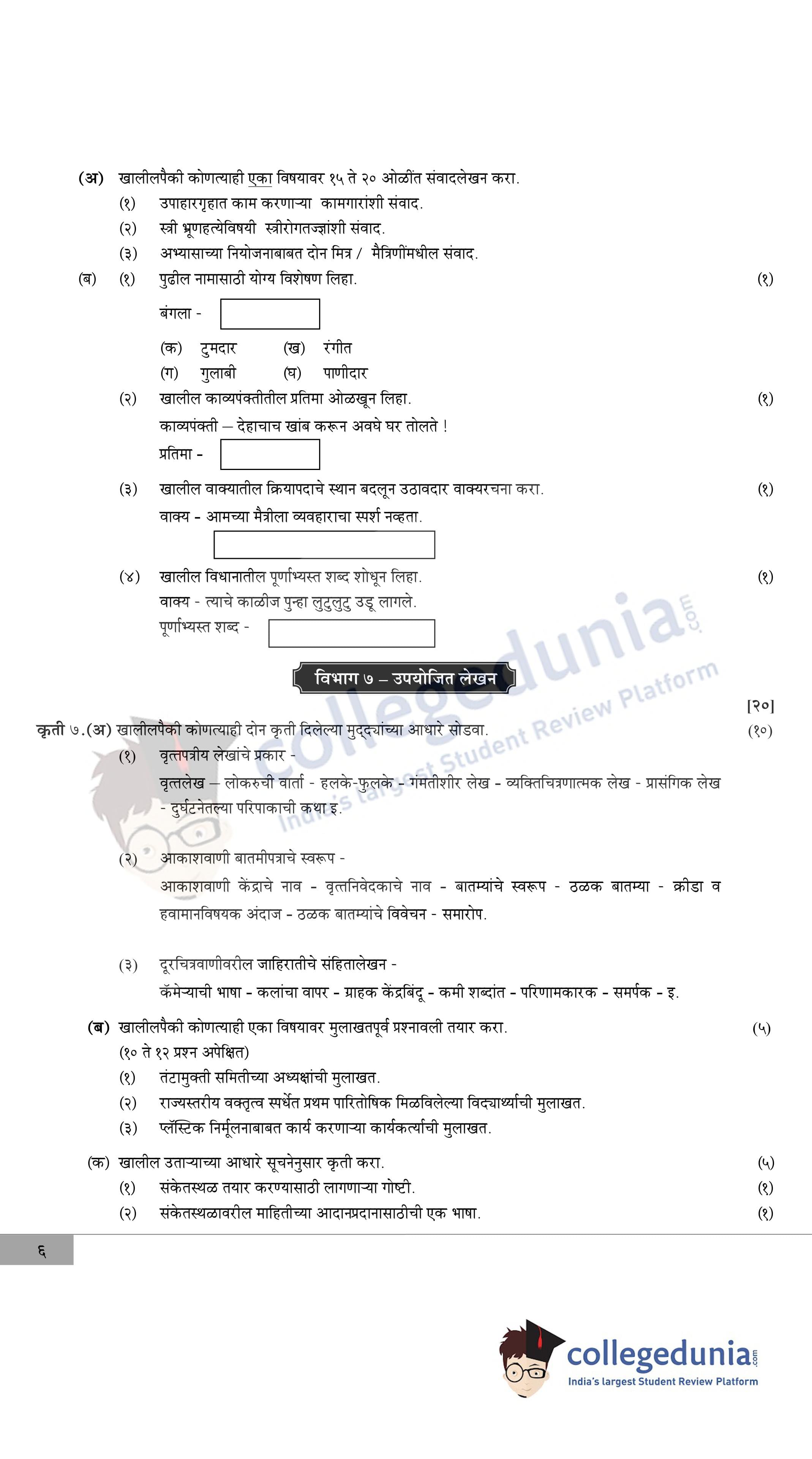 Maharashtra Board Class 12 Marathi Question Paper 2020 with Answer Key is available for download. The exam was conducted by the Maharashtra State Board of Secondary & Higher Secondary Education (MSBSHSE) on February 22, 2020 in the Morning Session 11.00 AM to 2.00 PM. The medium of paper was Marathi. The question paper comprised a total of 7 questions divided among 7 sections.