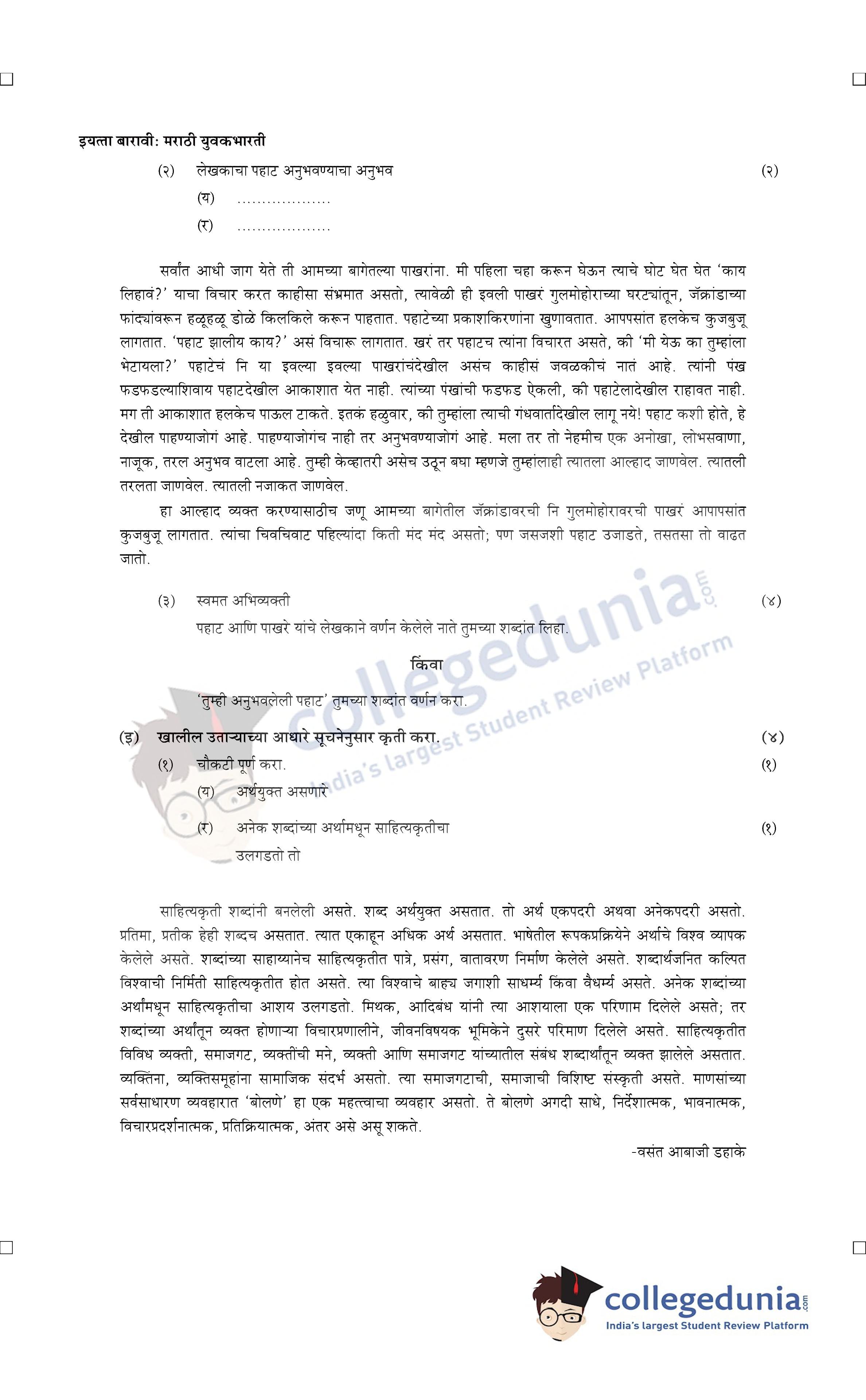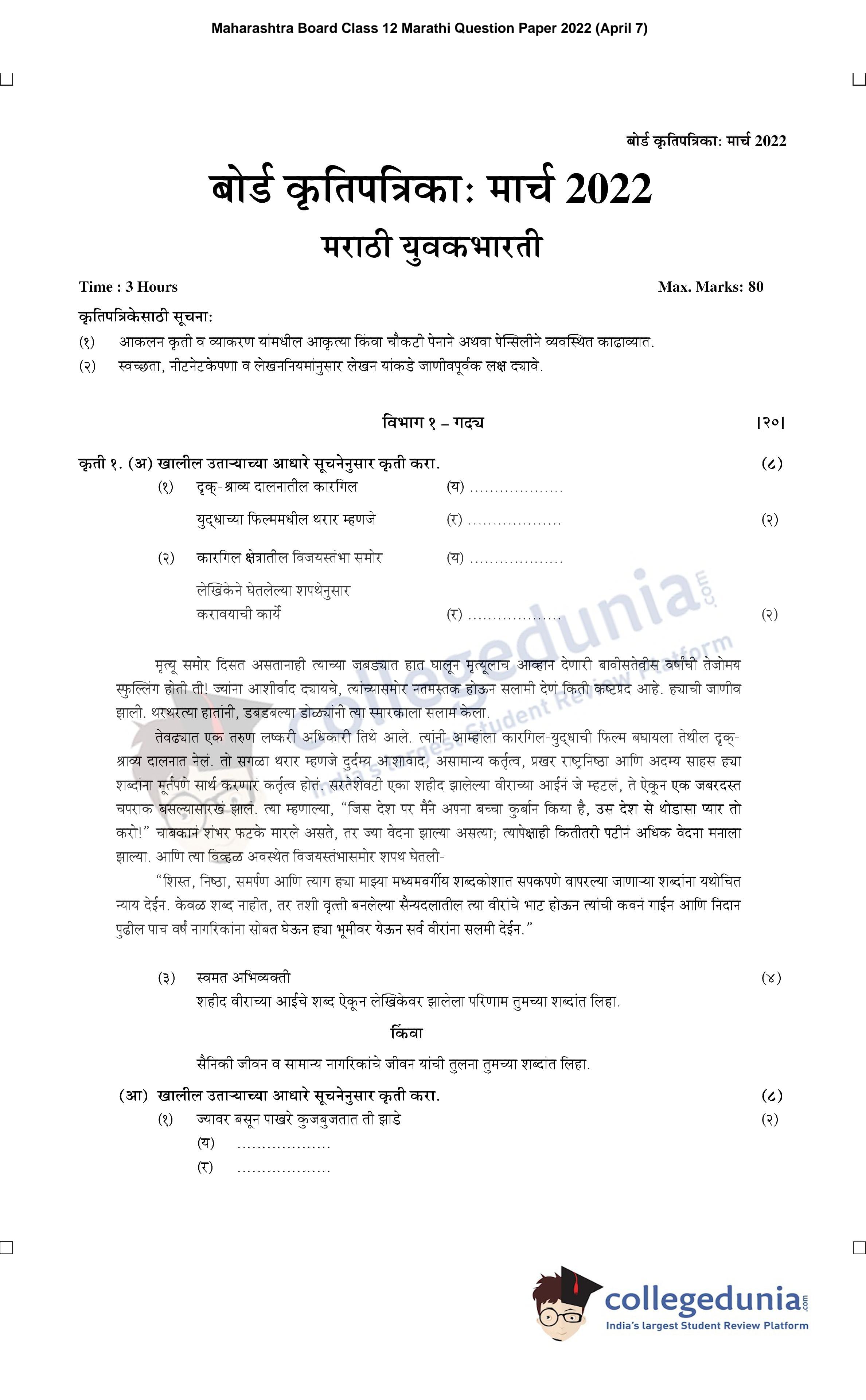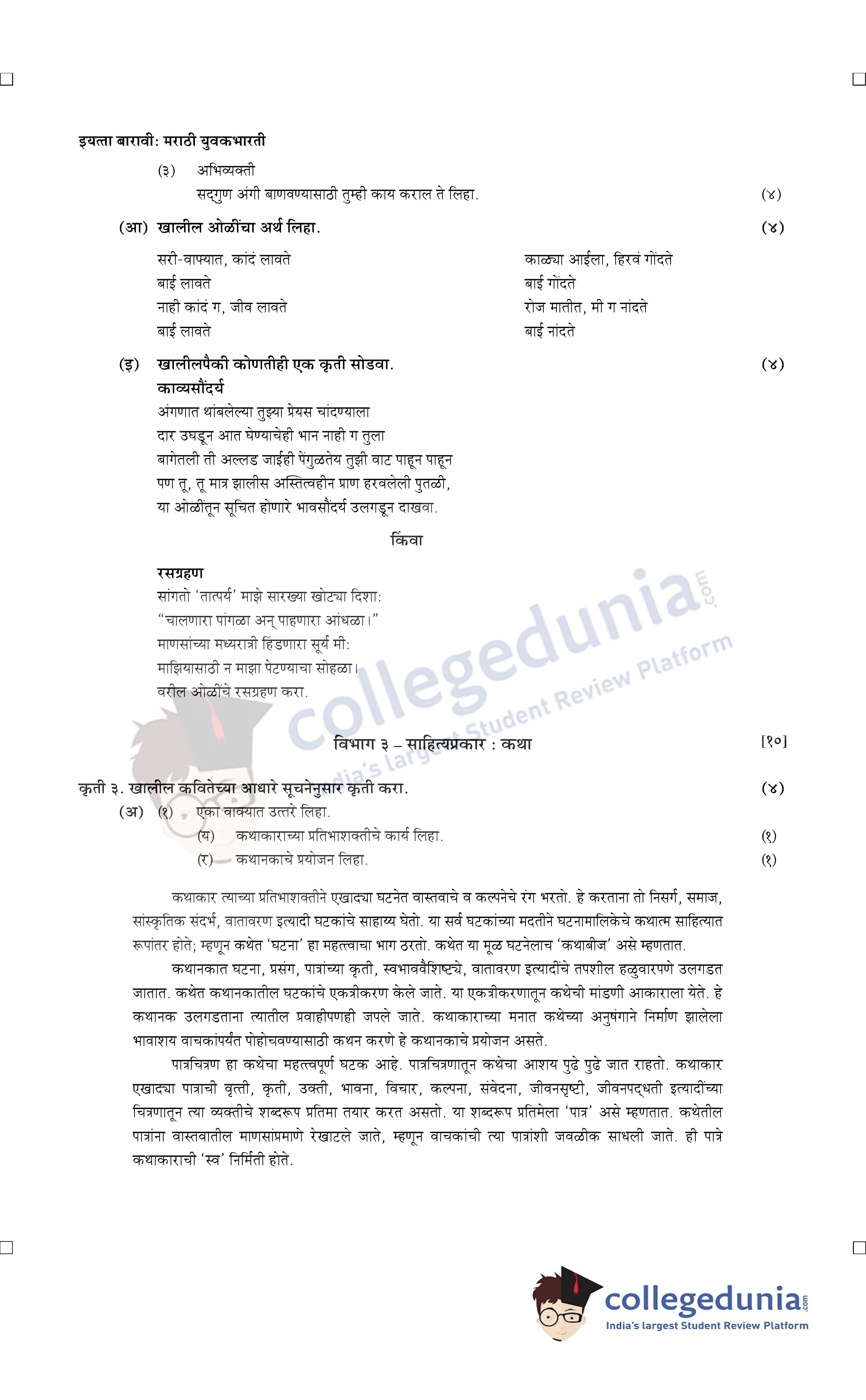 Maharashtra Board Class 12 Marathi Question Paper 2022 with Answer Key (April 7)