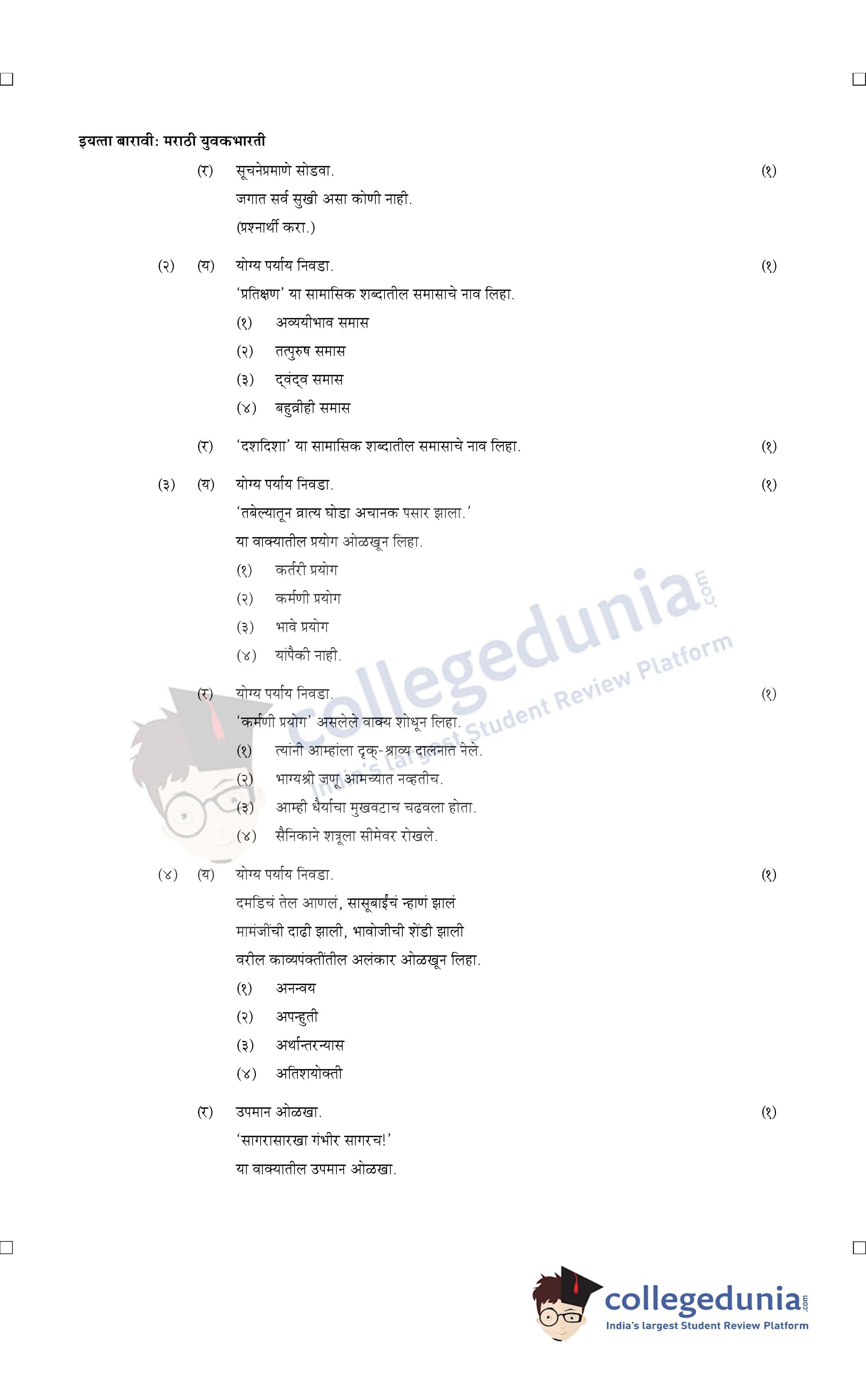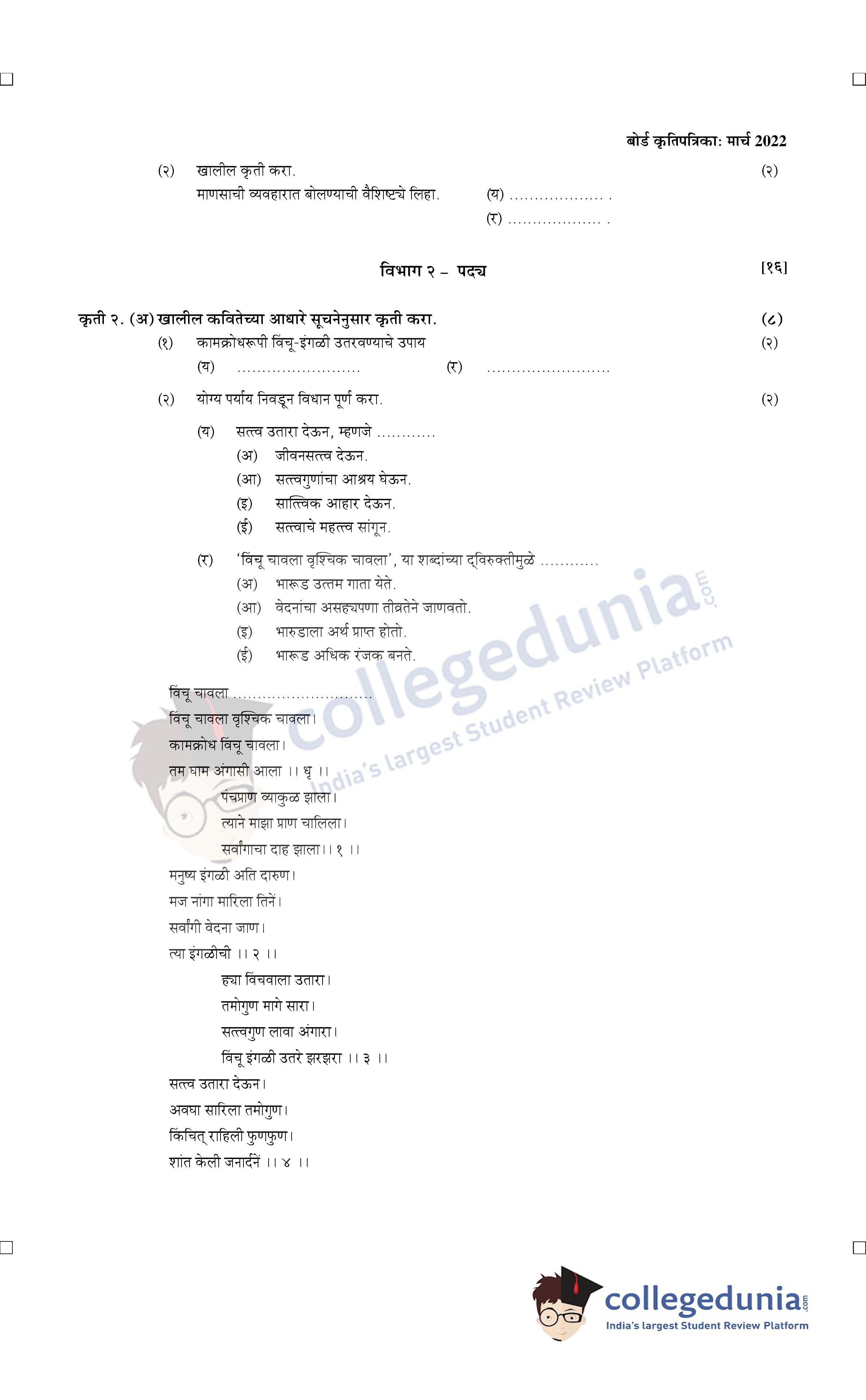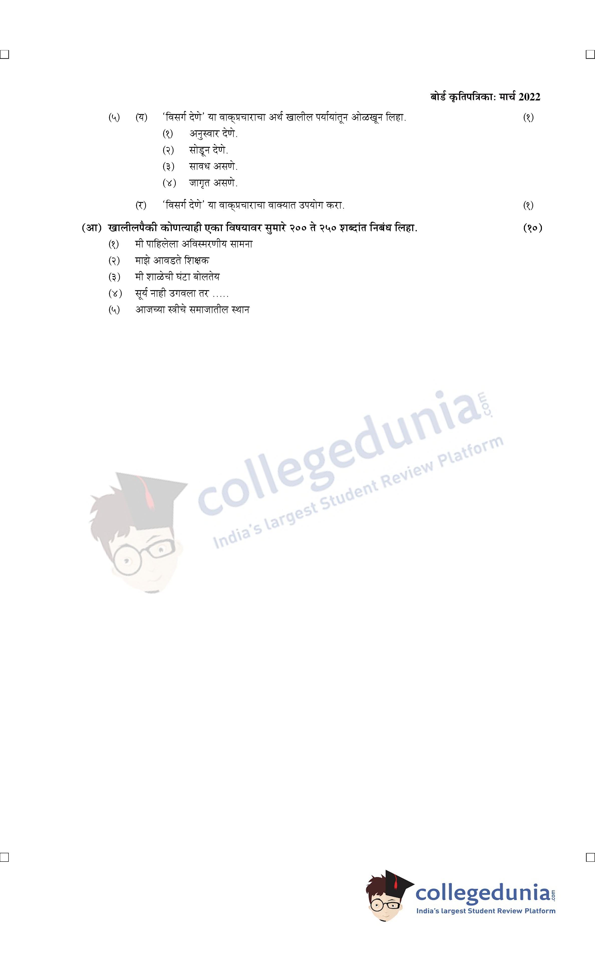 Maharashtra Board Class 12 Marathi Question Paper 2022 with Answer Key (April 7)