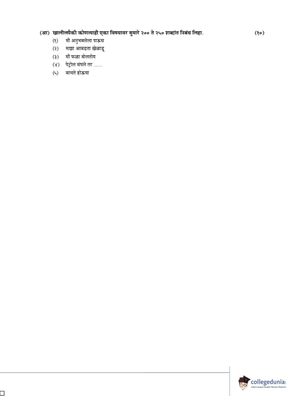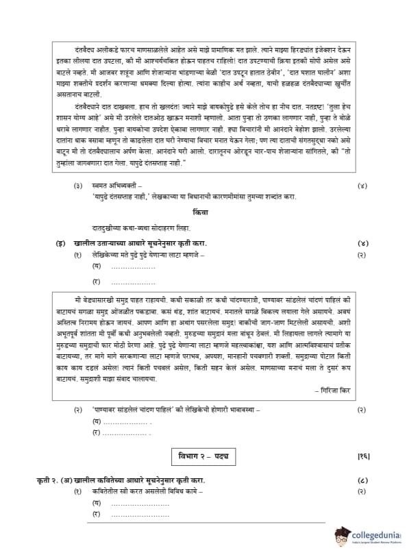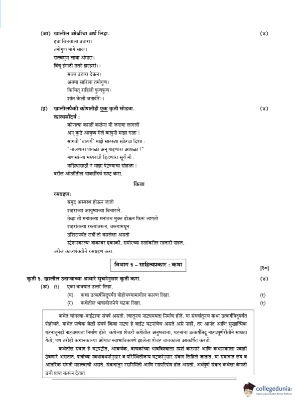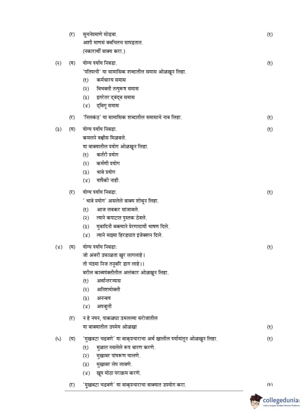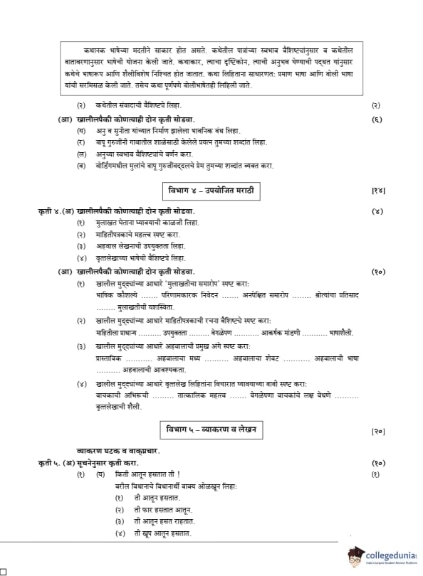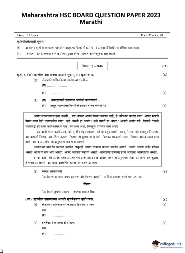 Maharashtra Board Class 12 Marathi Question Paper 2023 with Answer Key pdf is available for download here. The exam was conducted by Maharashtra State Board of Secondary & Higher Secondary Education (MSBSHSE) on February 23, 2023 in the Forenoon Session 11 AM to 2 PM. The question paper comprised a total of 5 questions divided among 5 sections.