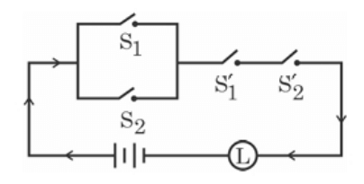Express the following switching circuit in the symbolic form of logic. Construct the switching table and interpret it.