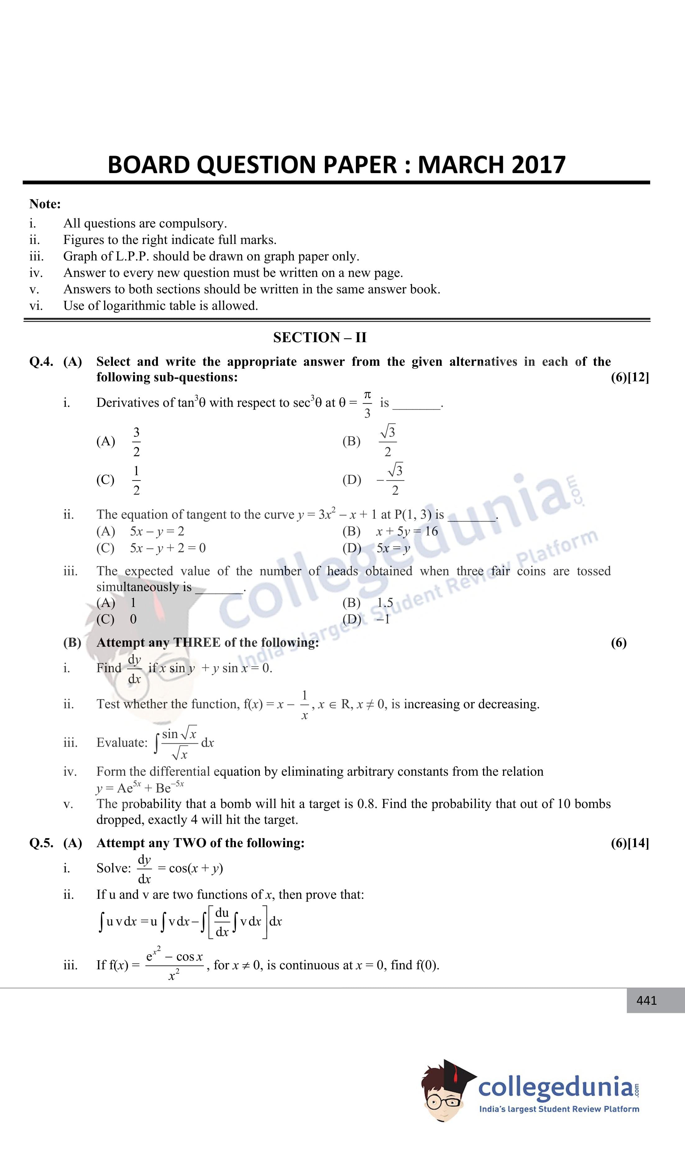 | Maharashtra Board Class 12 Mathematics and Statistics Question Paper 2017 PDF | Maharashtra Board Class 12 Mathematics and Statistics Answer Key 2017 PDF |