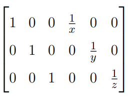 , non-singular means \( x, y, z \neq 0 \). Augment with identity matrix: \( [A | I] = \)
