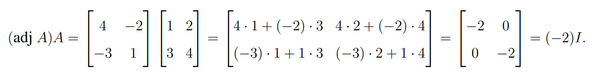 Compute determinant: \( |A| = 1 \cdot 4 - 2 \cdot 3 = 4 - 6 = -2 \).