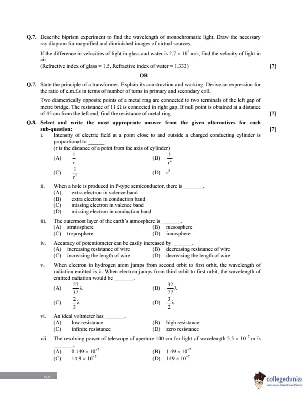 Maharashtra Board Class 12 Physics Question Paper 2014 with Answer Key is available for download. The exam was conducted by the Maharashtra State Board of Secondary & Higher Secondary Education (MSBSHSE) on February 25, 2014 in the Morning Session 11.00 AM to 2.00 PM. The medium of paper was English. The question paper comprised a total of 8 questions divided among 2 sections.