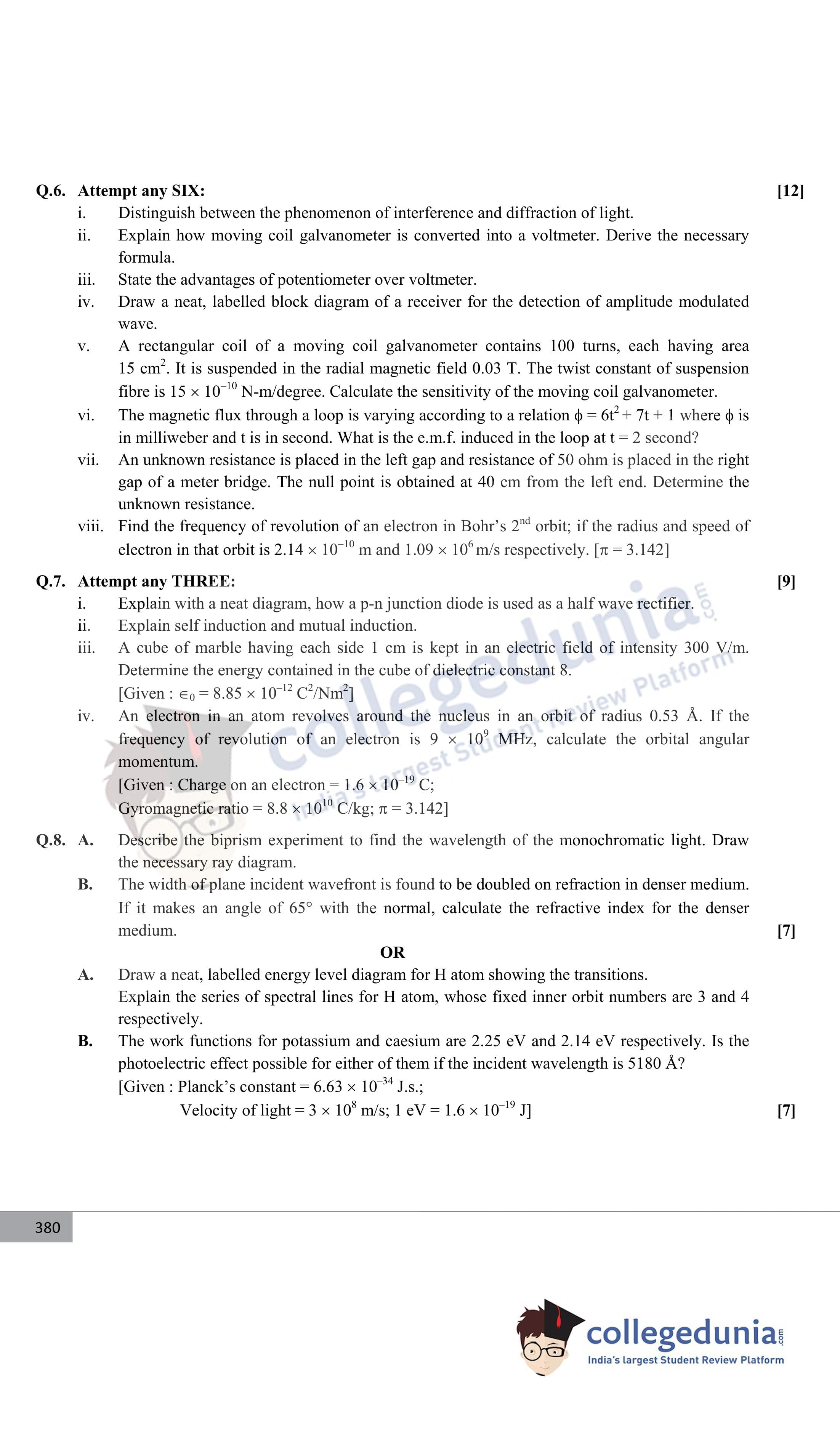 Maharashtra Board Class 12 Physics Question Paper 2017 with Answer Key (March 4)