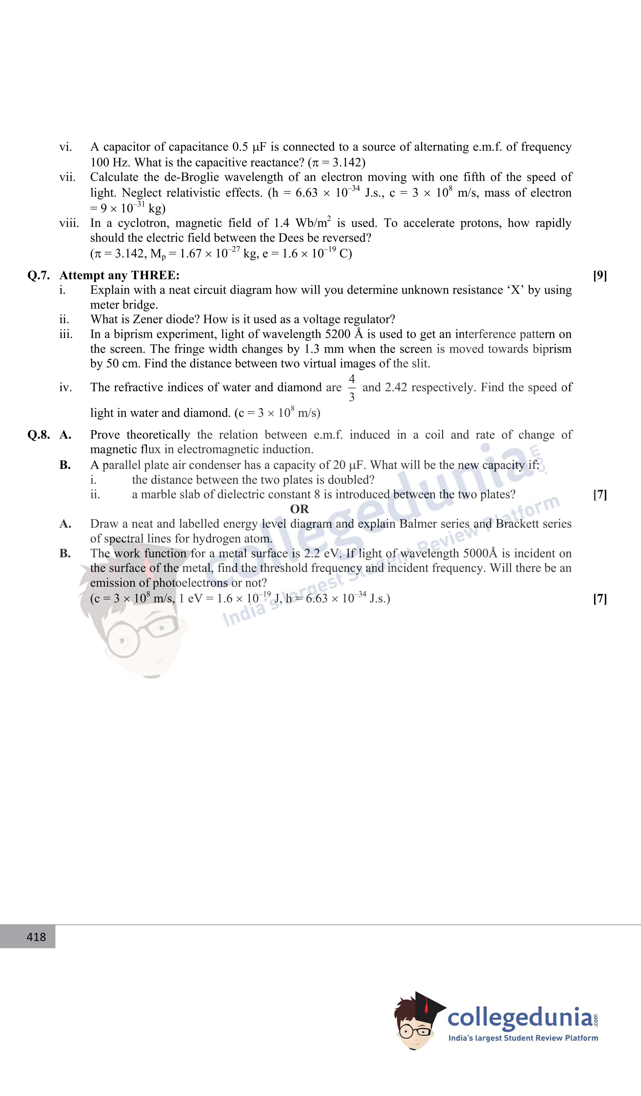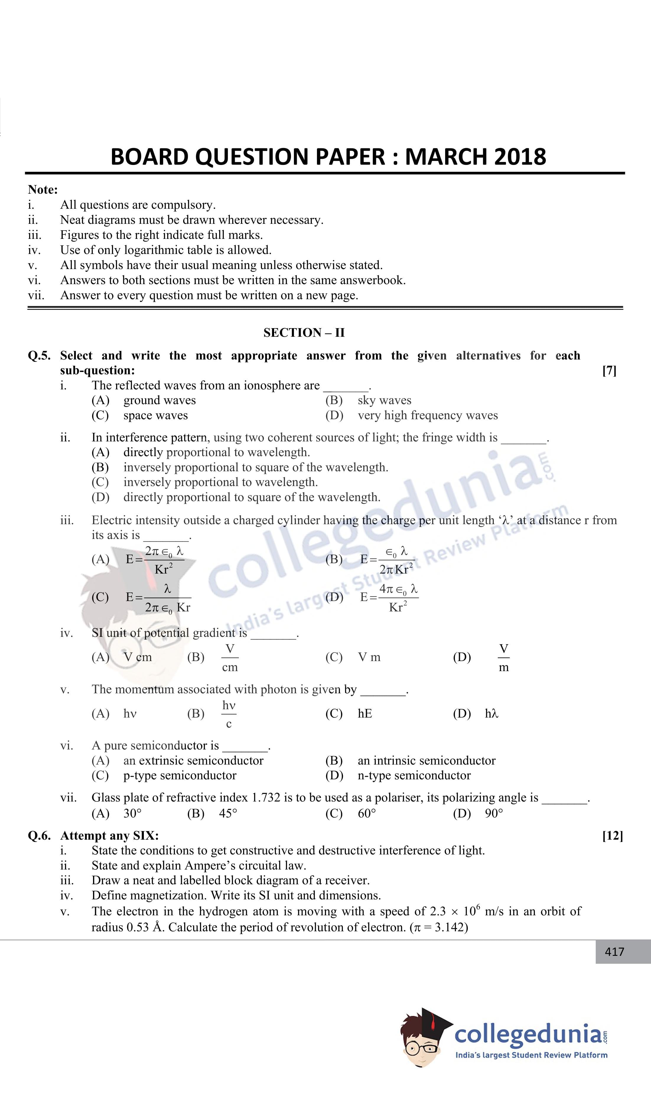 Maharashtra Board Class 12 Physics Question Paper 2018 with Answer Key (February 26)