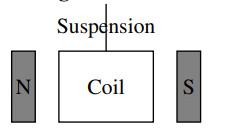 Labelled parts: Coil, N-pole, S-pole, Suspension.