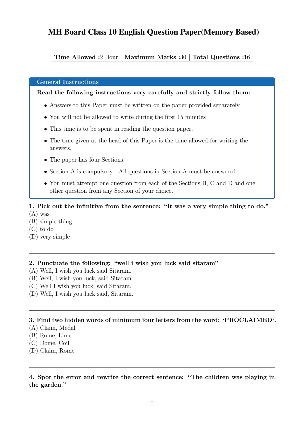 | Maharashtra SSC Class10 English Question Paper 2026 | Download PDF | Check Solutions |