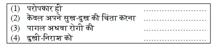 (सांत्वना, पशुता, सेवा-शुश्रूषा, मानवता, सामर्थ्य)